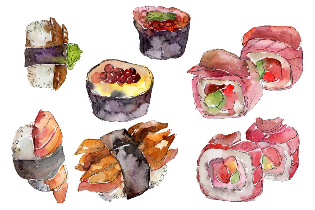 Роллы акварель