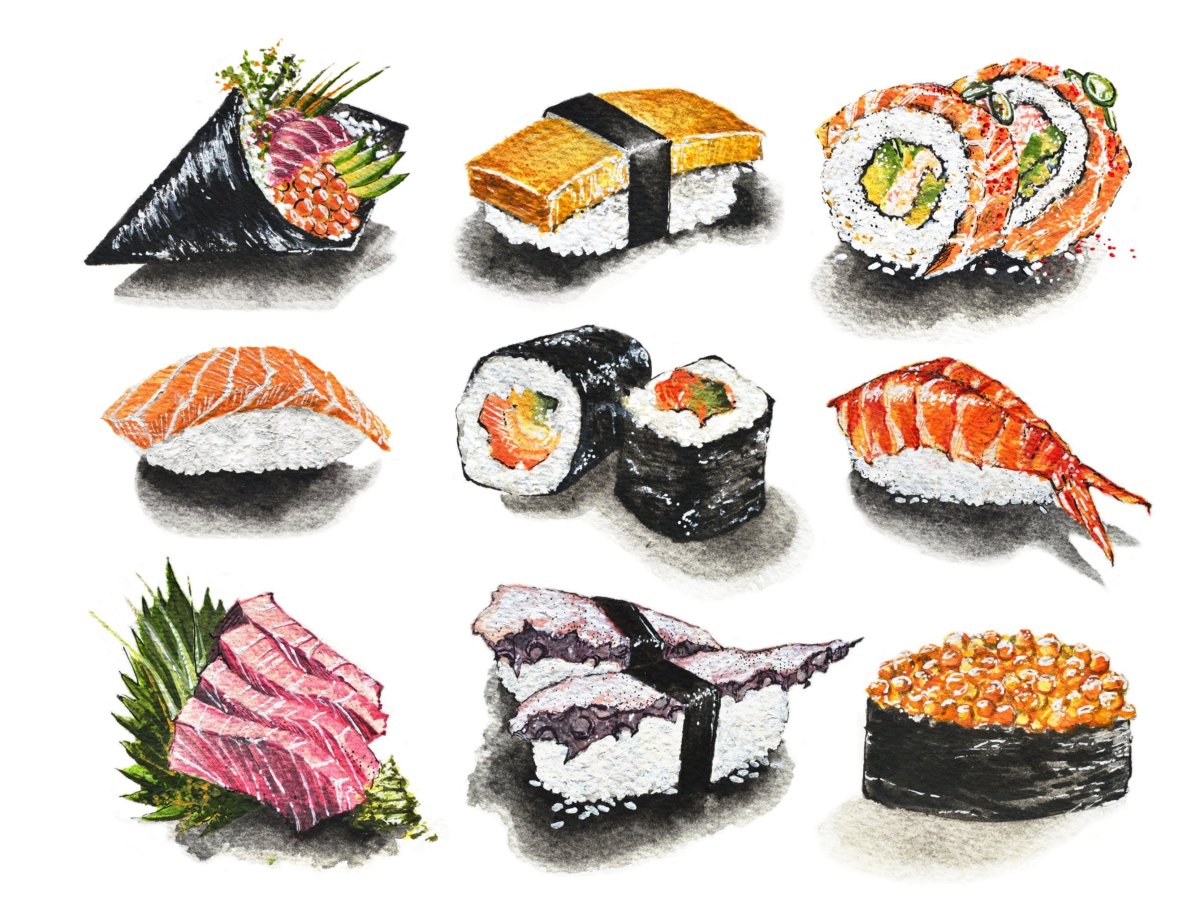 Нарисованные роллы и суши