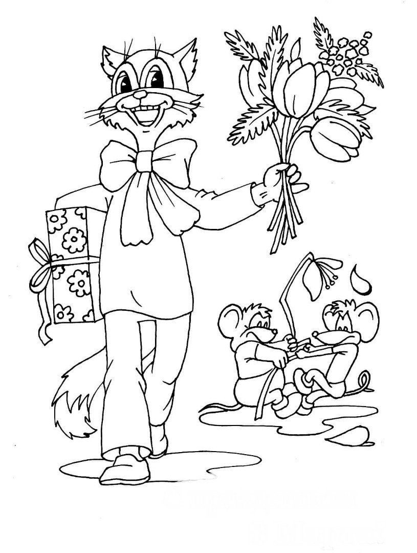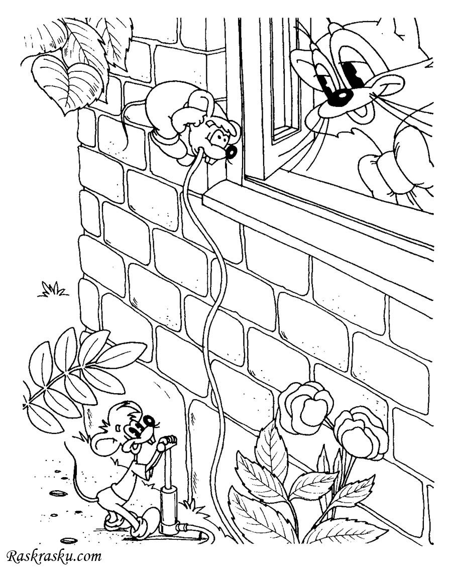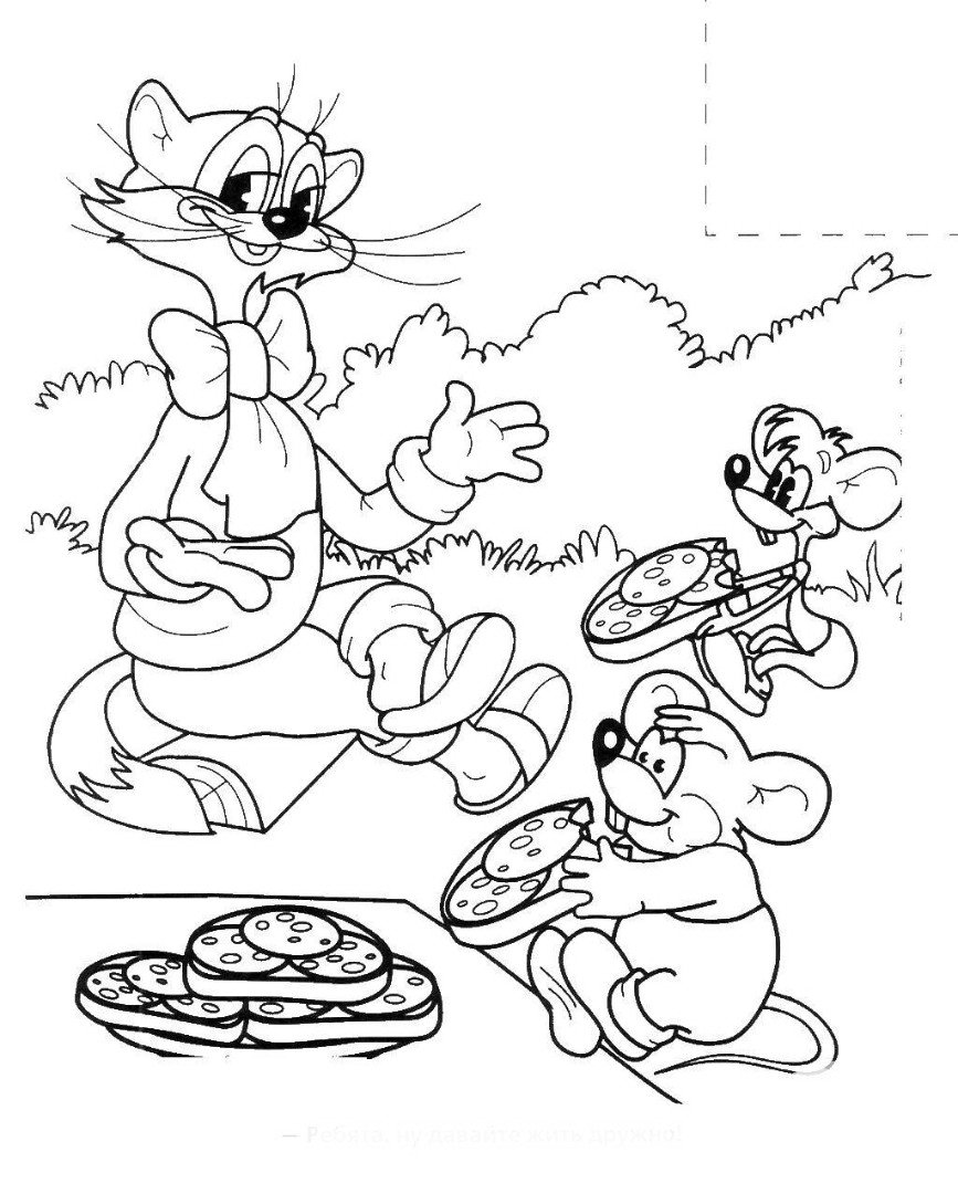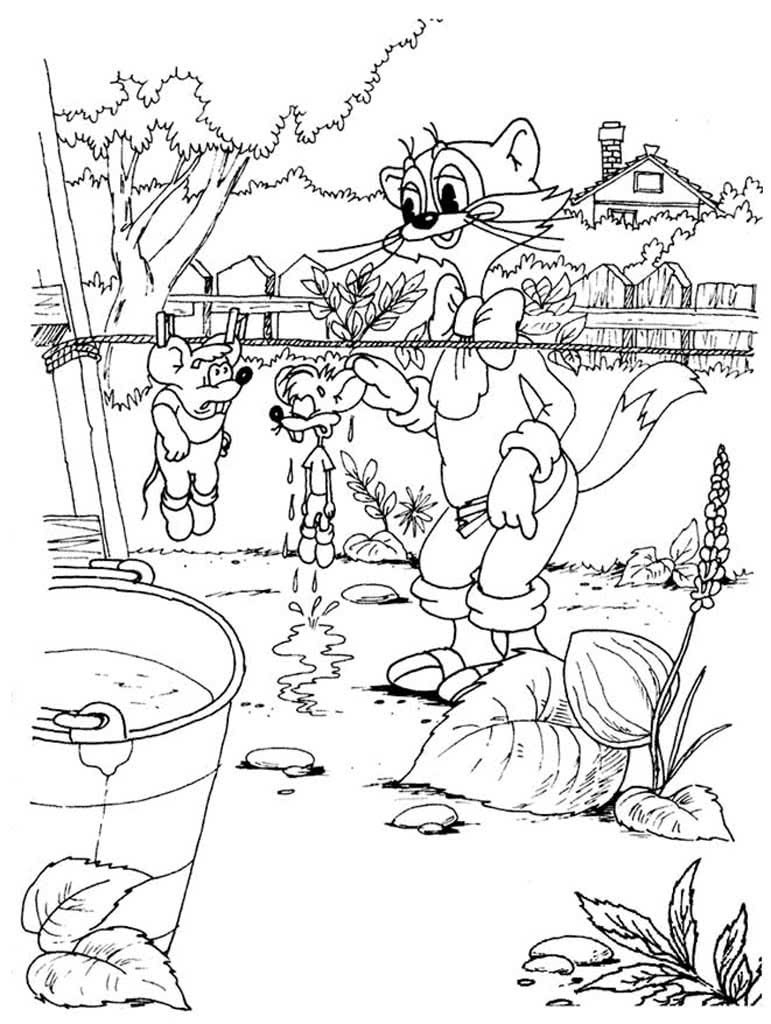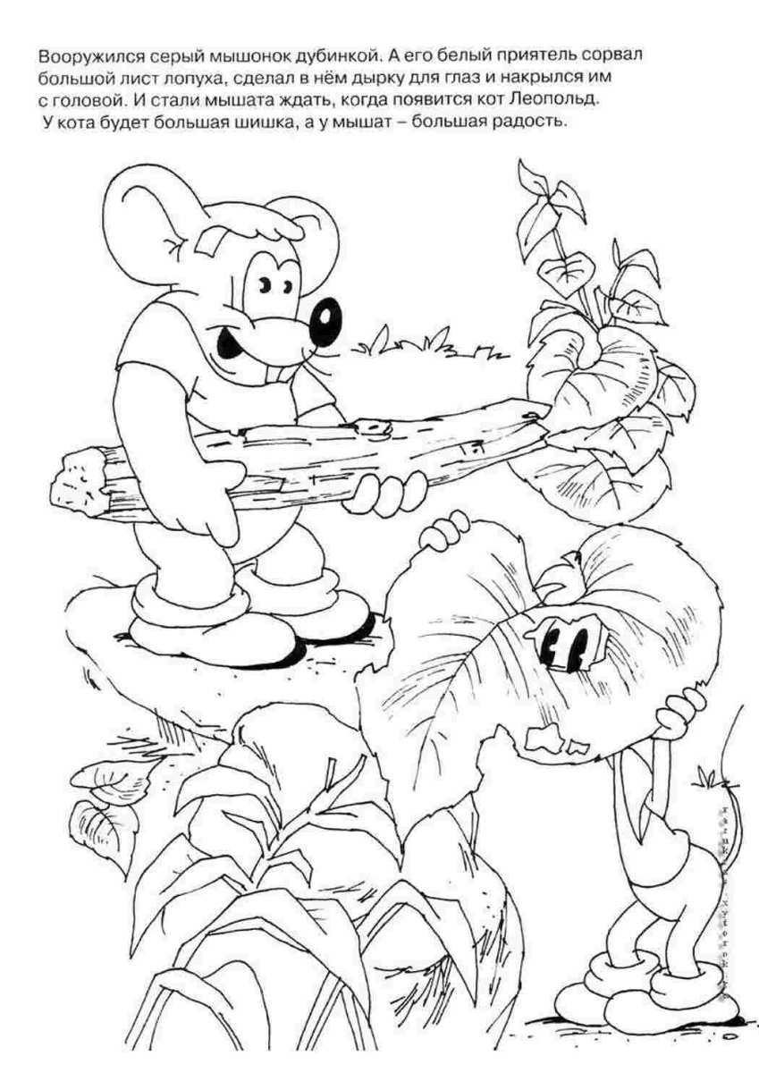 Кот леопольд и мыши раскраска