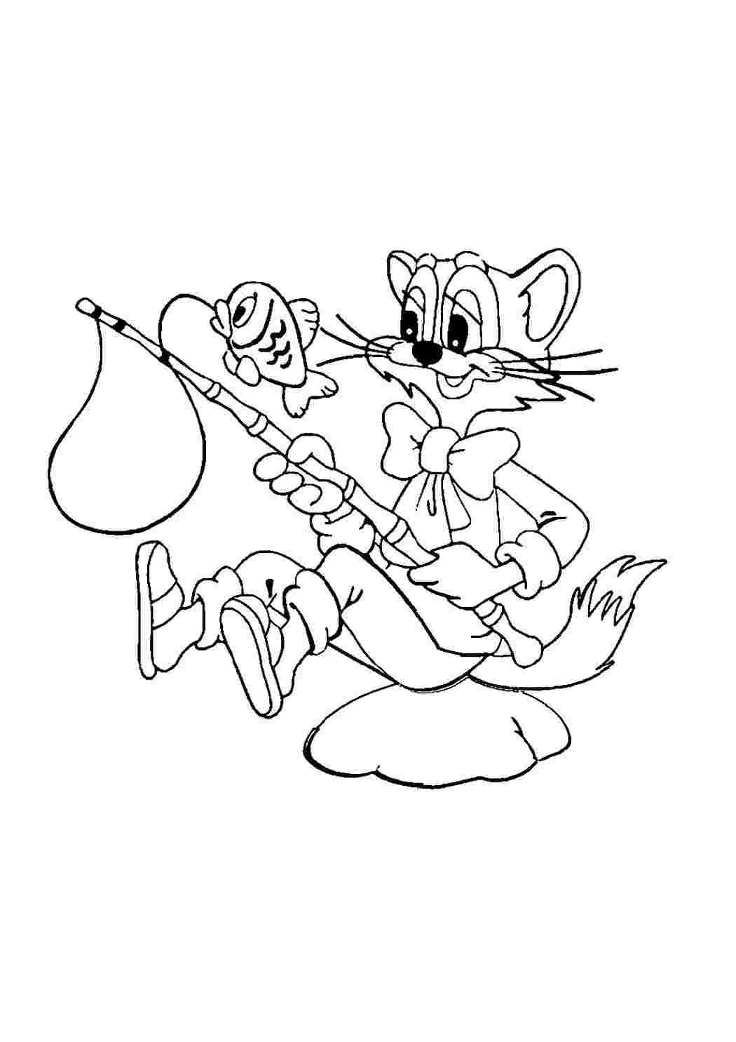 Раскраска кот Леопольд и Золотая рыбка