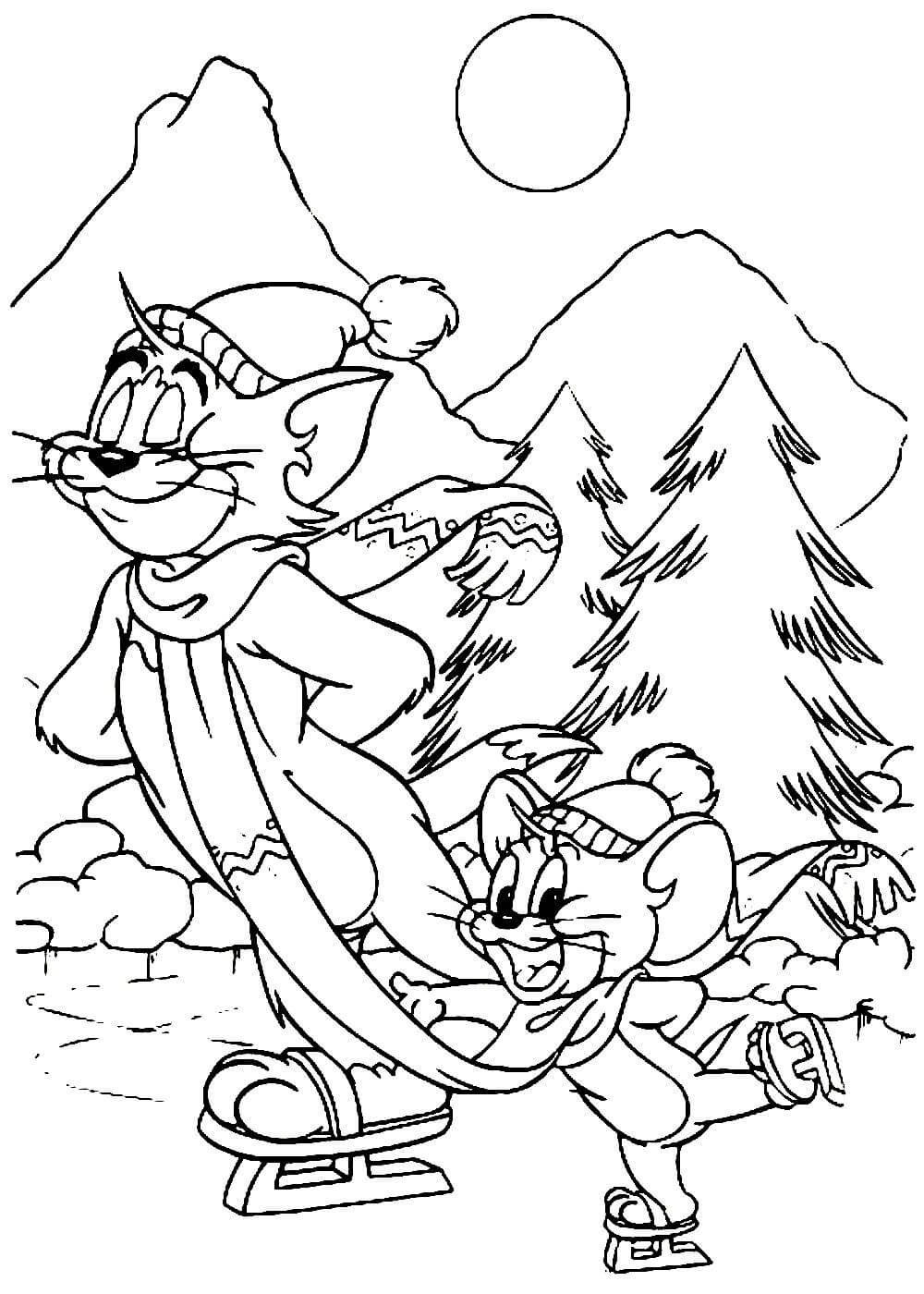 Раскраска том и Джерри новогодние