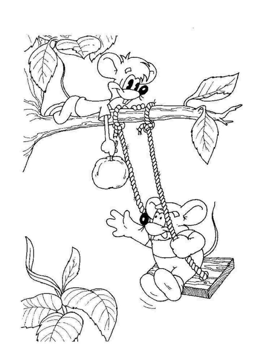 Мыши на качелях раскраска