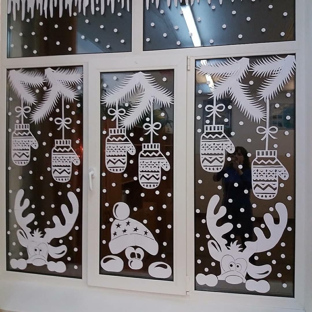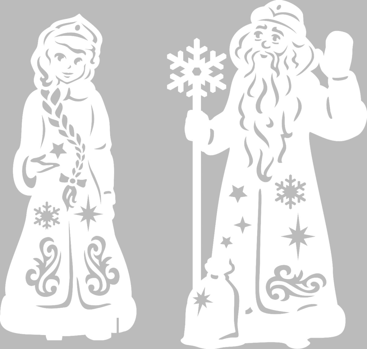Новогодние вытанки на окна дед Мороз и Снегурочка