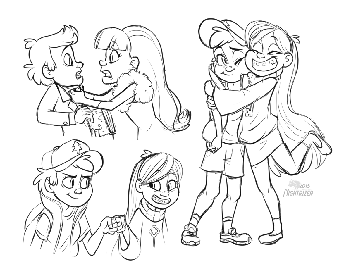 Гравити Фолз для срисовки Мэйбл и Диппер