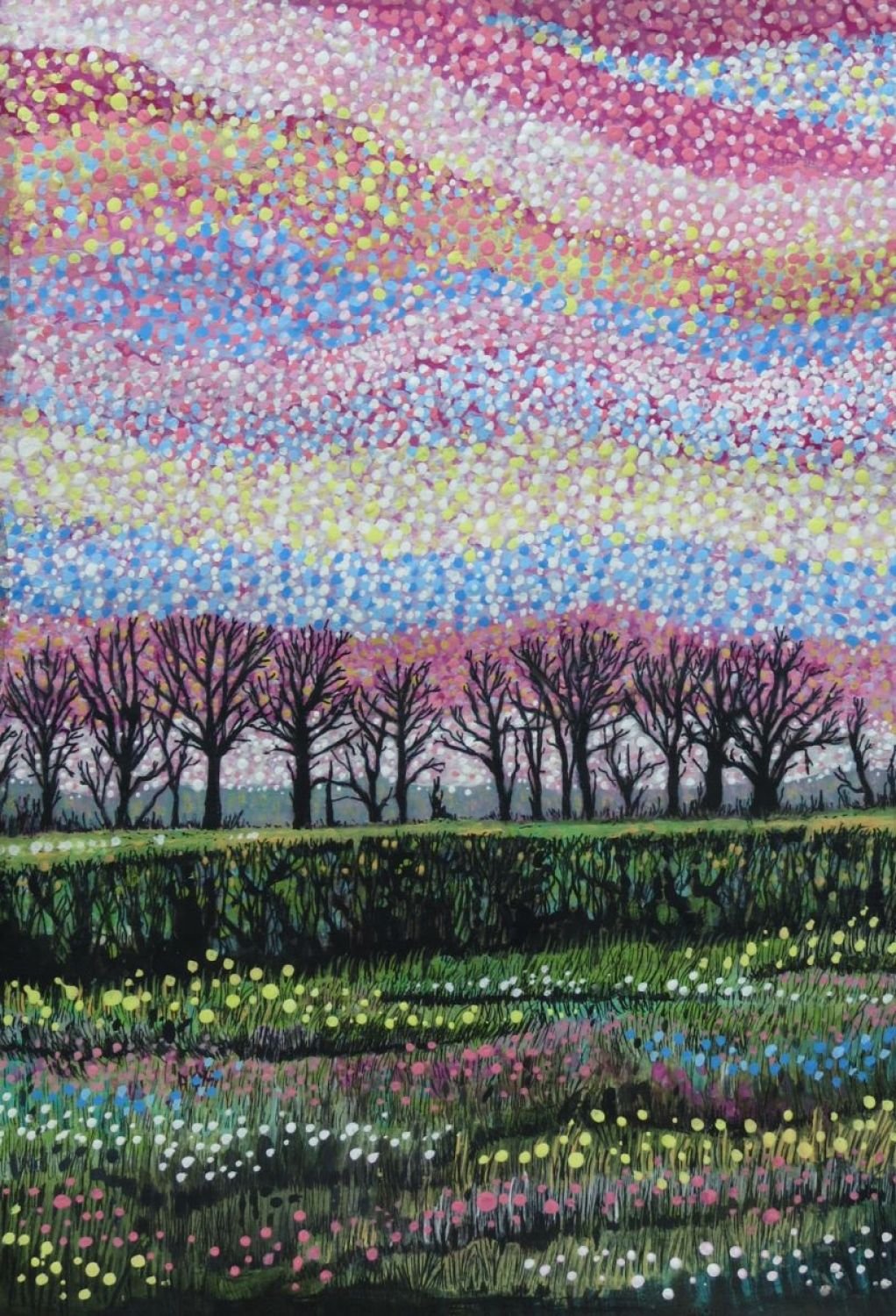 Облака в технике пуантилизм для детей