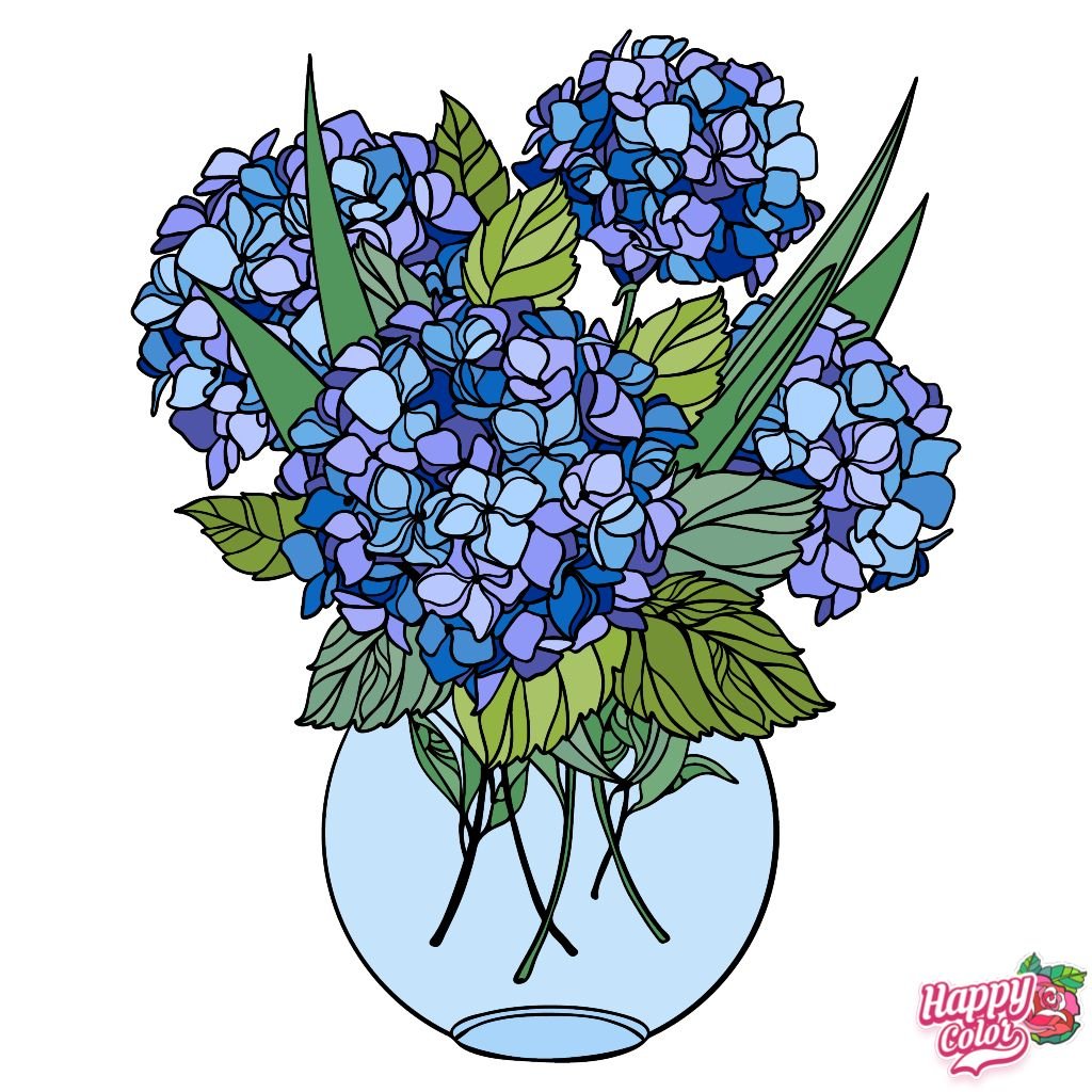 Раскраска букет гортензий