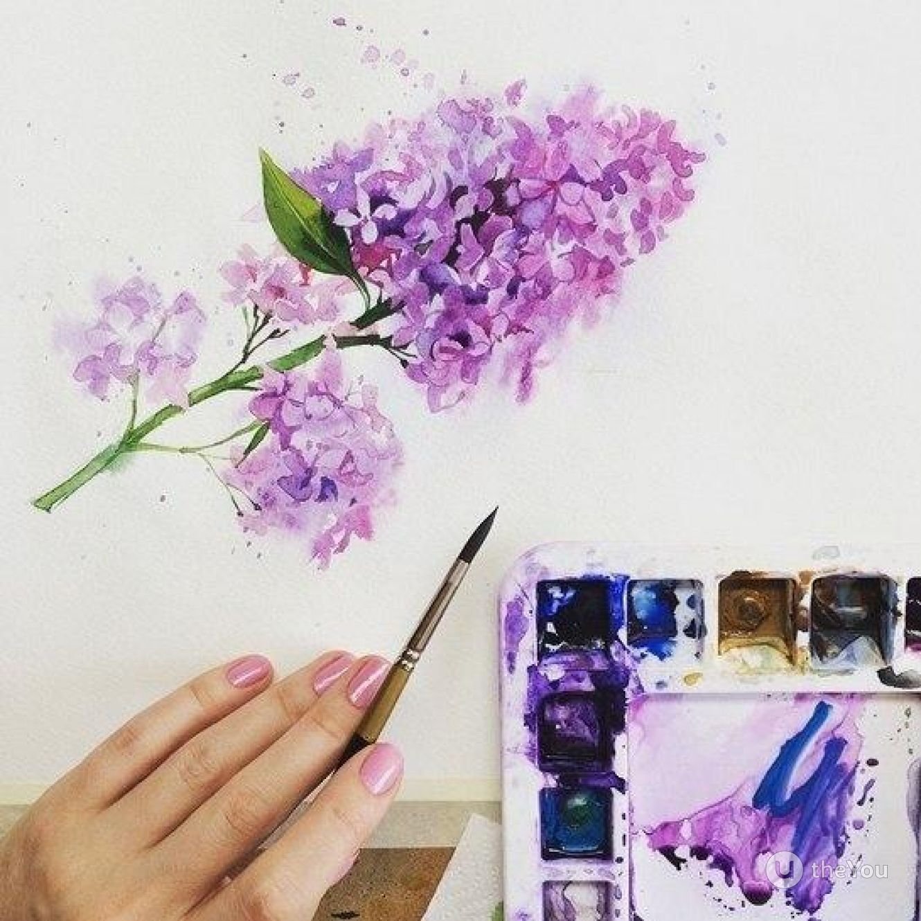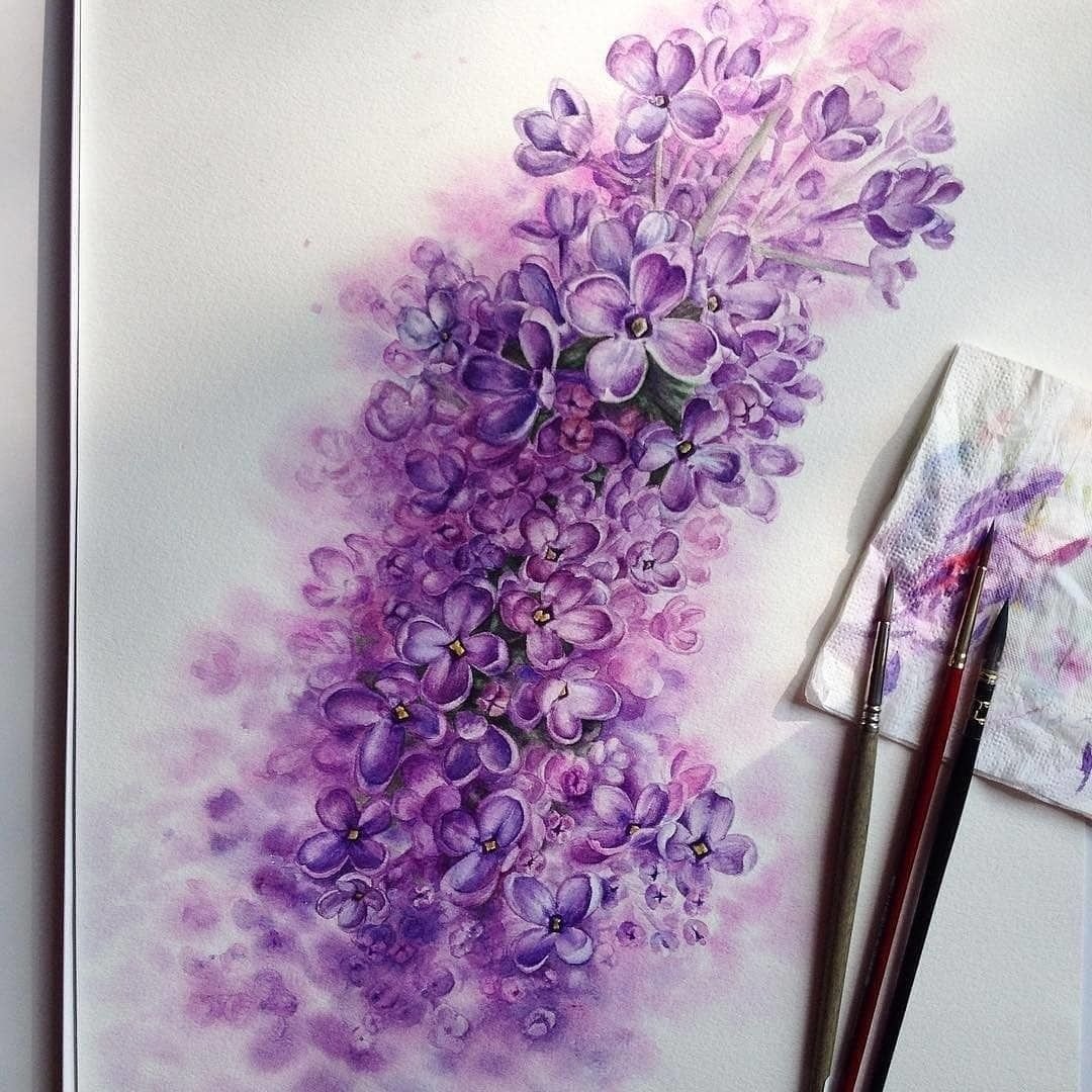 Сирень акварелью
