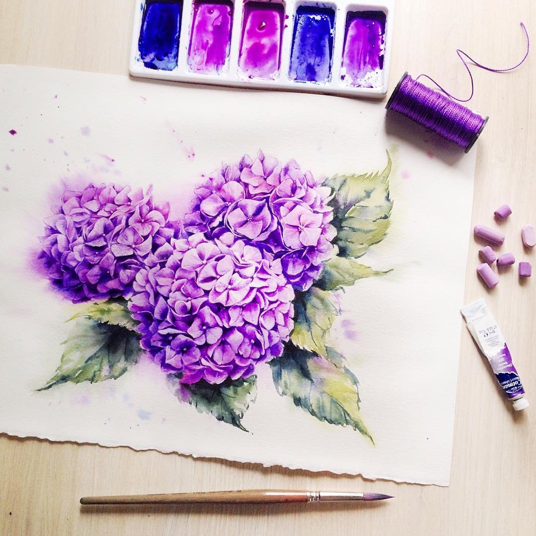 Гортензия акварель