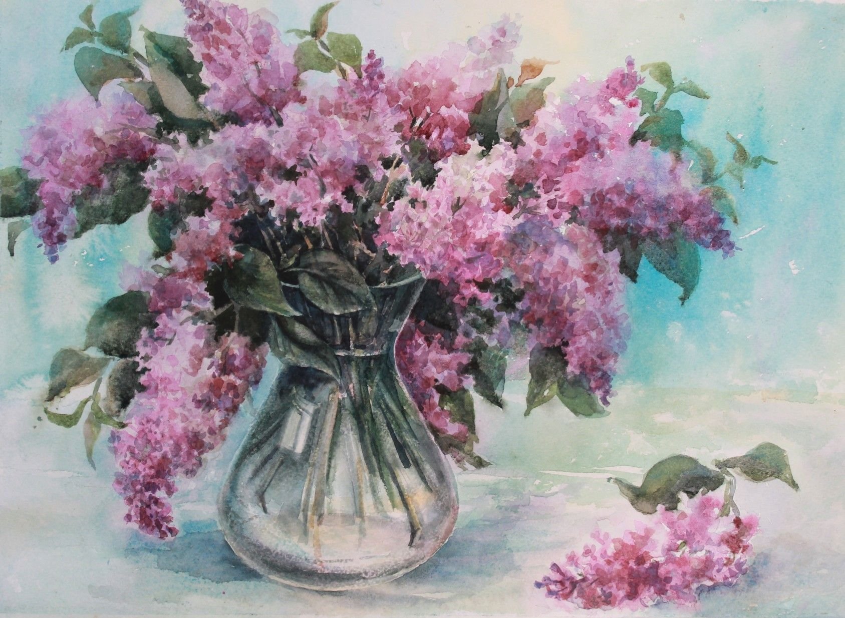 Натюрморт с сиренью акварелью