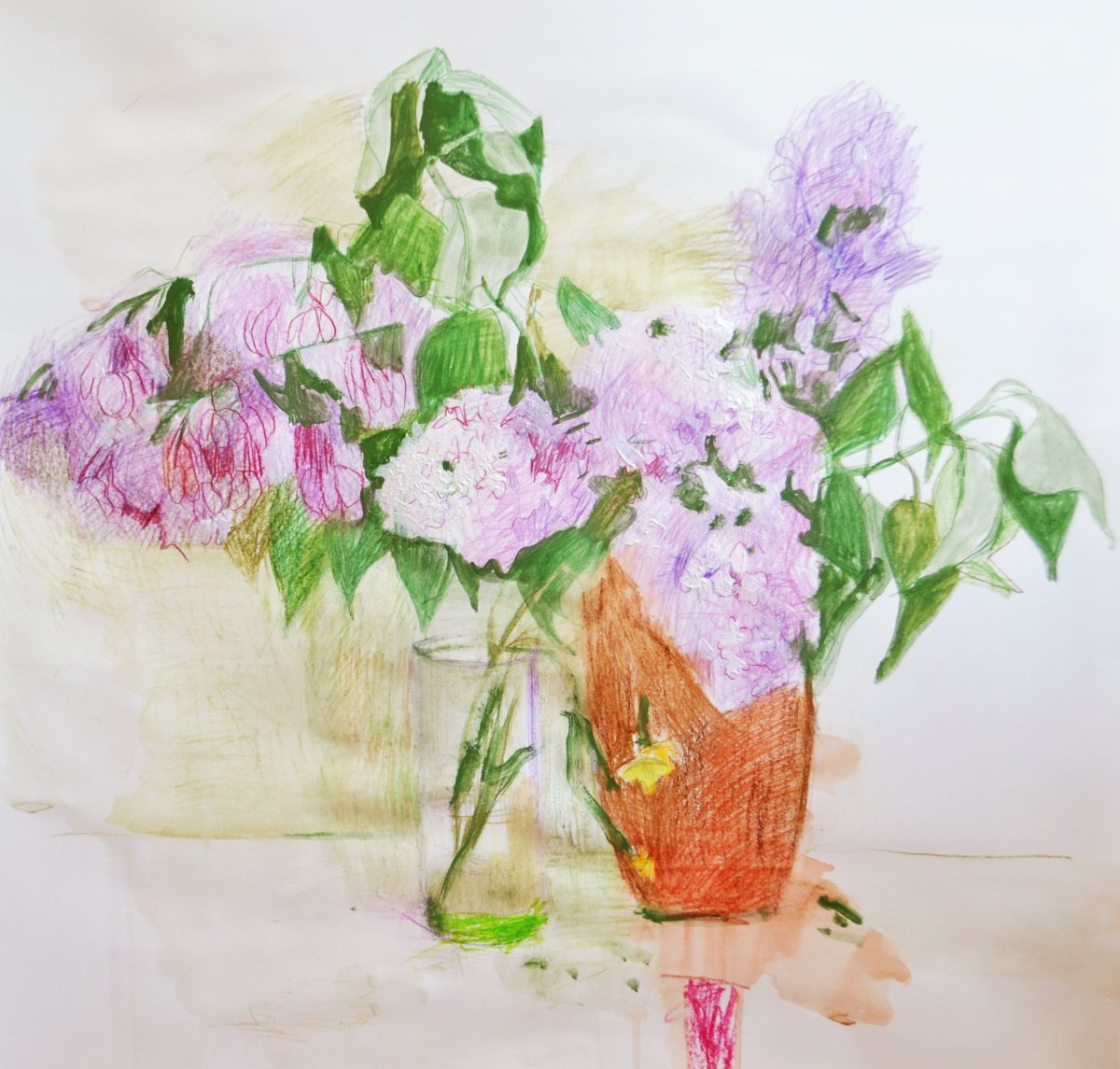 Сирень в вазе рисунок для детей