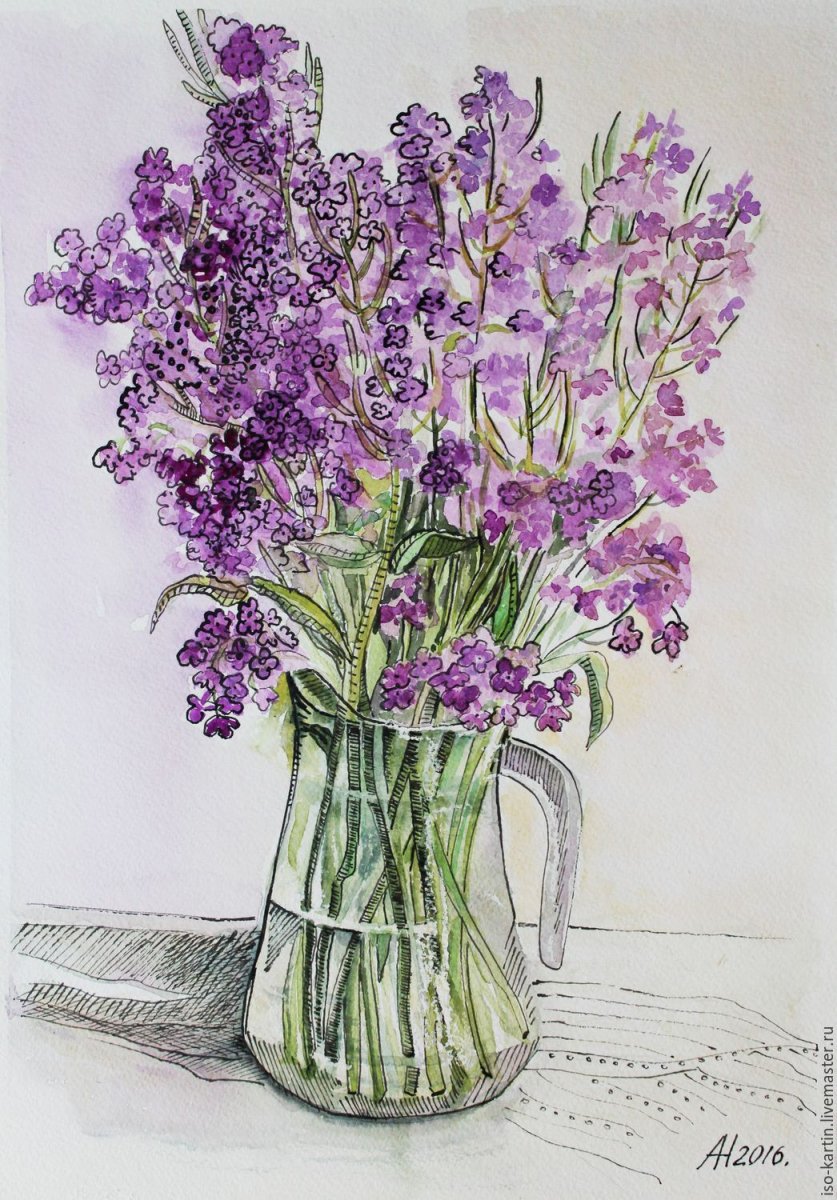 Ваза с сиренью рисунок