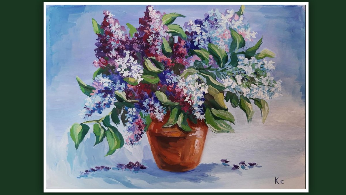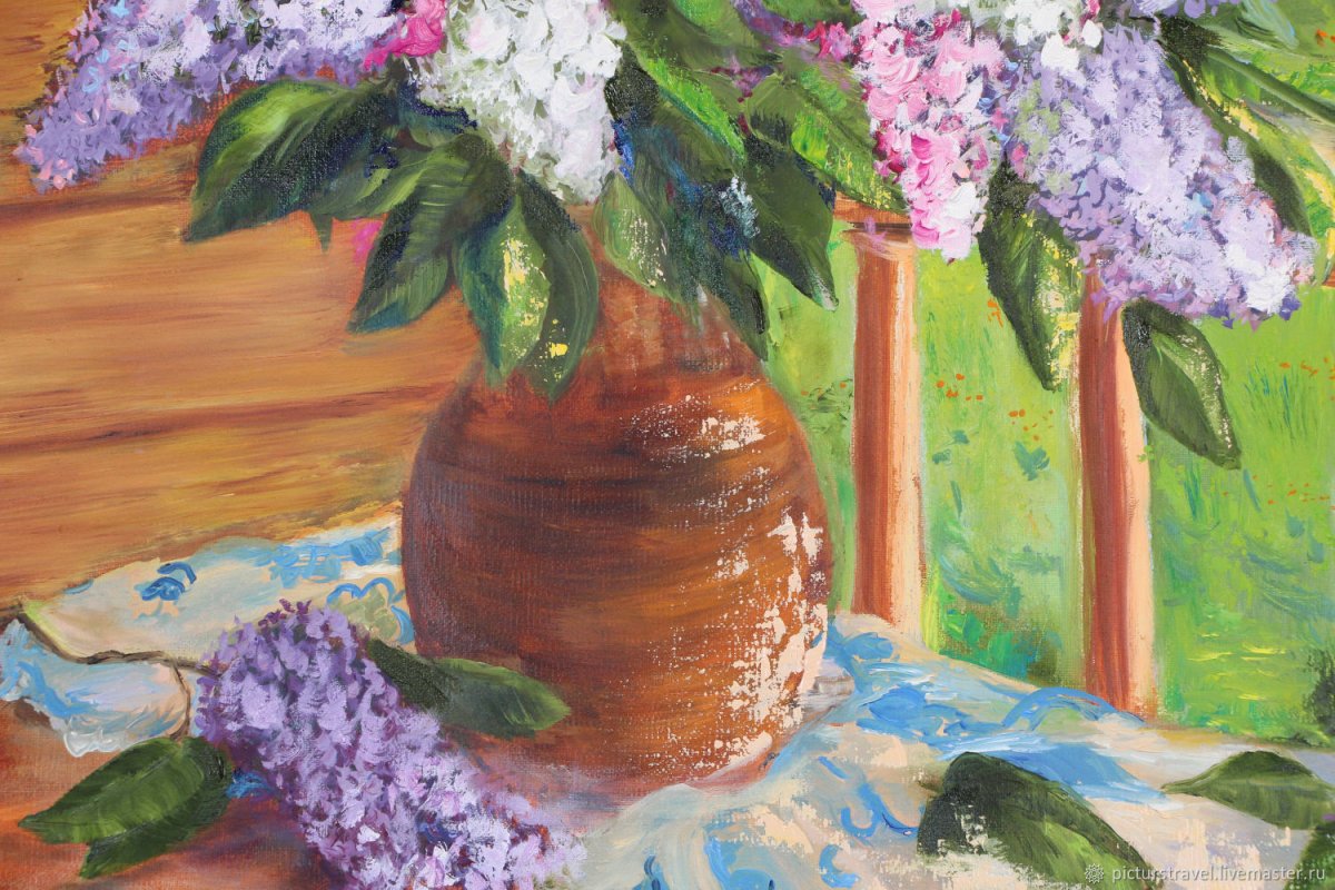 Натюрморт детский с сиренью живопись