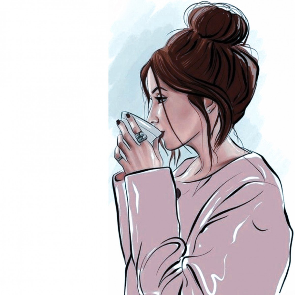 Нарисованная девушка с кофе