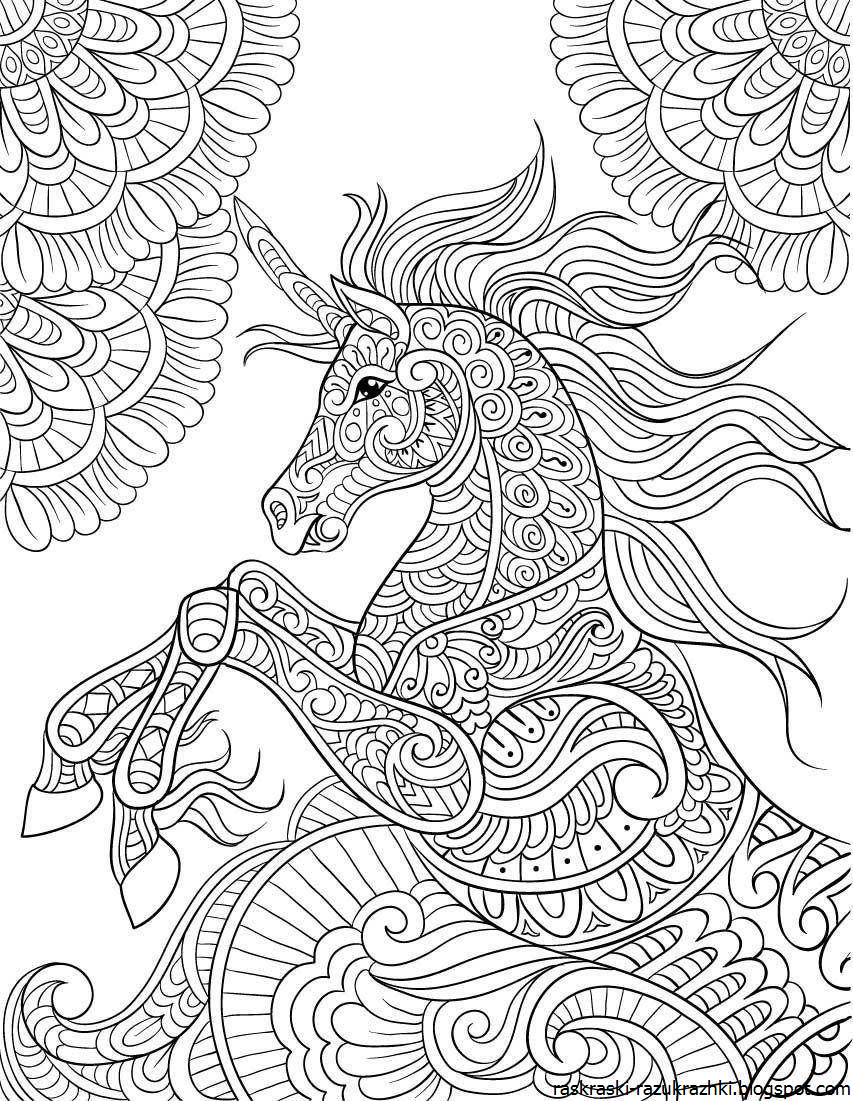 Раскраски антистресс Единорог сложные