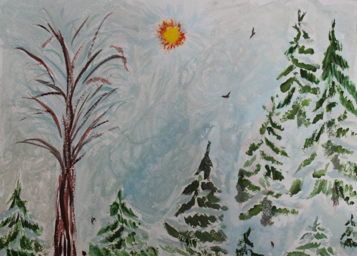 Рисунок к стихотворению Тютчева Чародейкою зимою