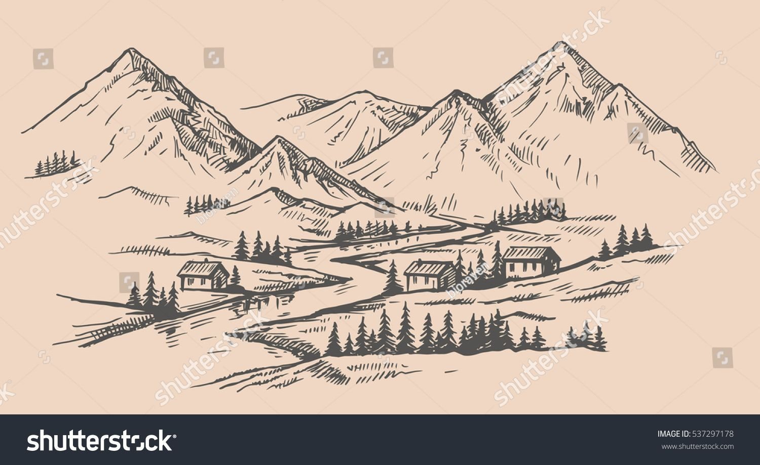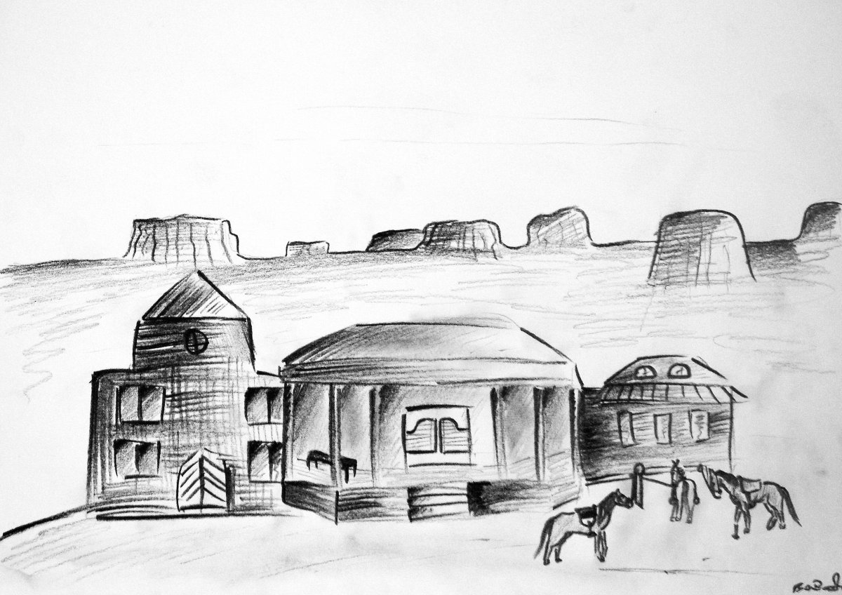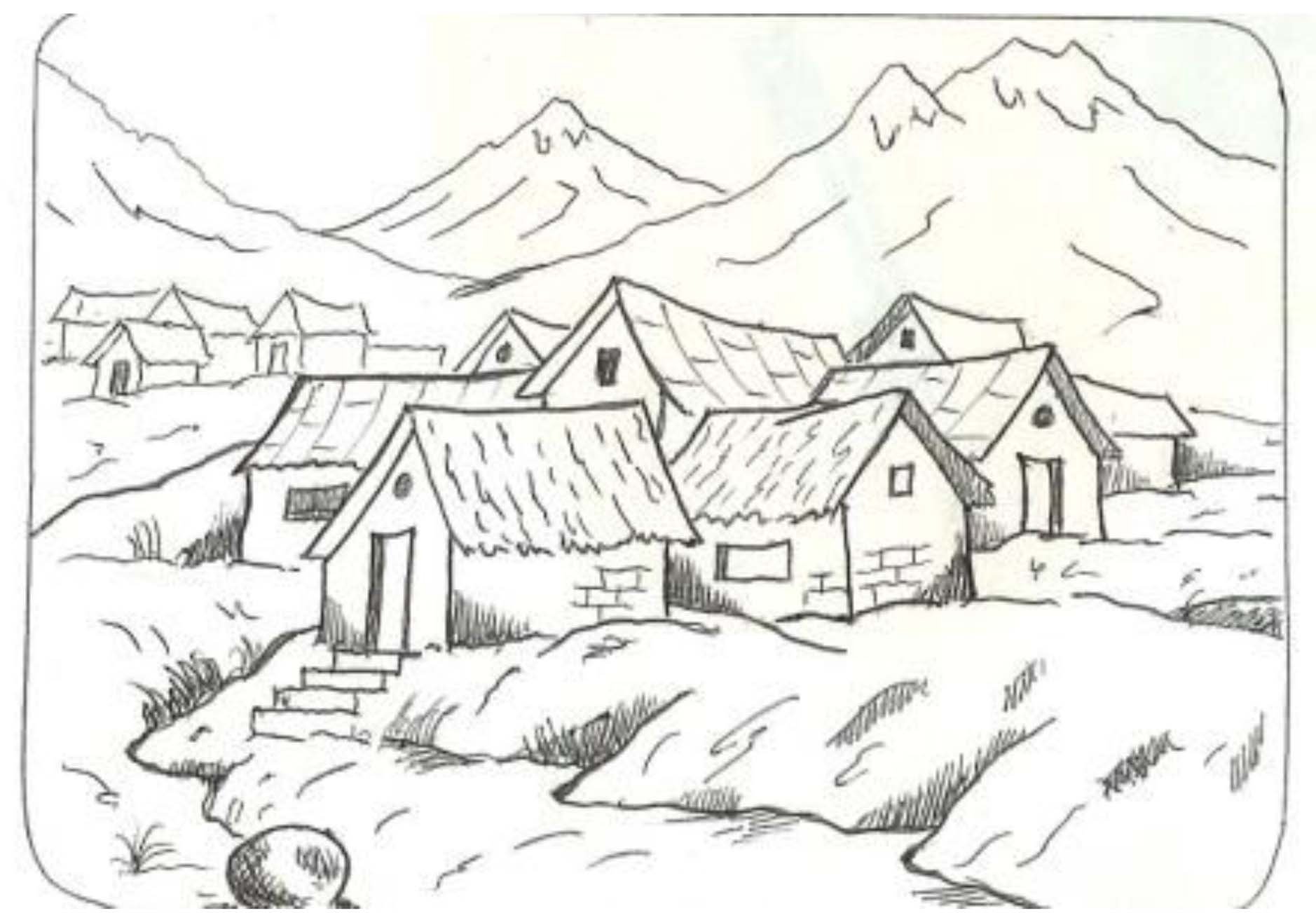 Домик в горах карандашом