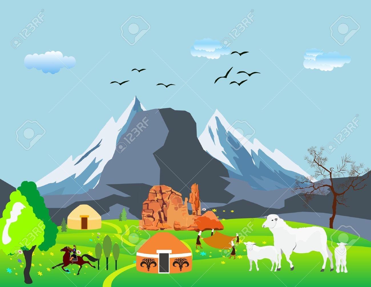 Горы юрта вектор