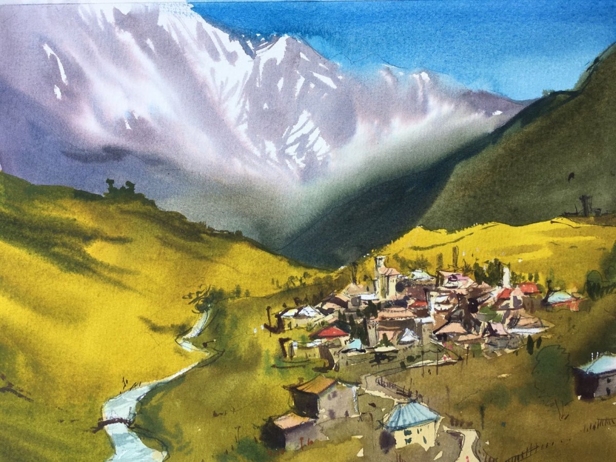Грузия Казбеги акварель
