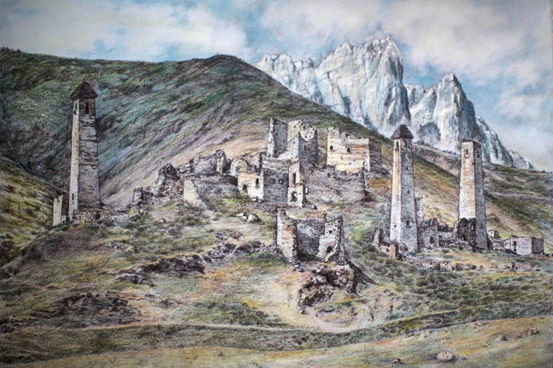 Горы и башни Ингушетии картины