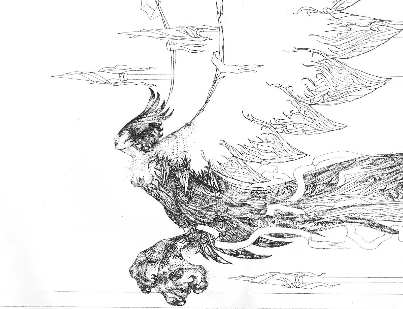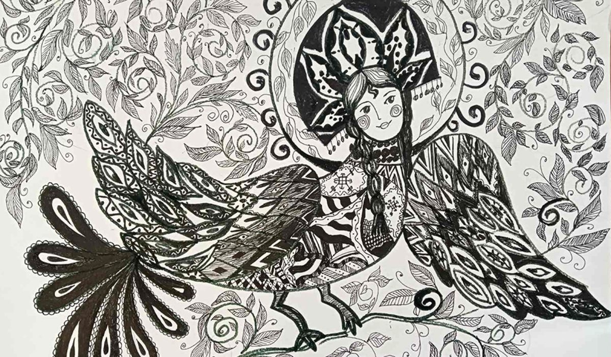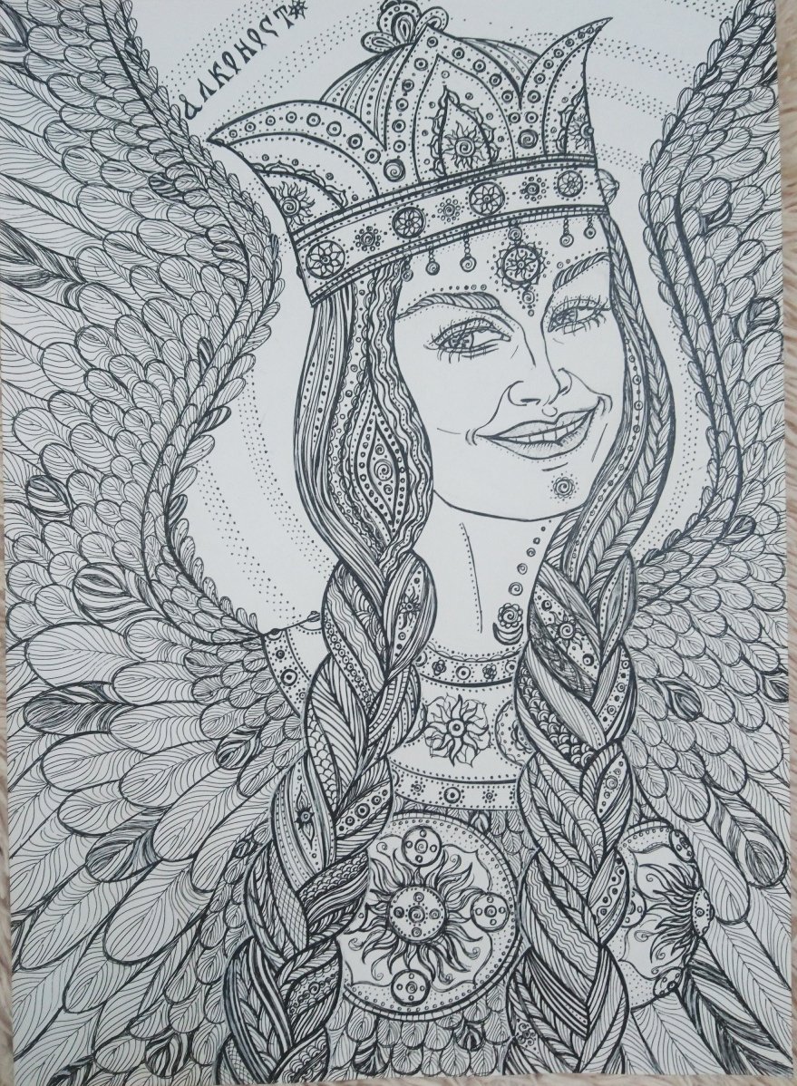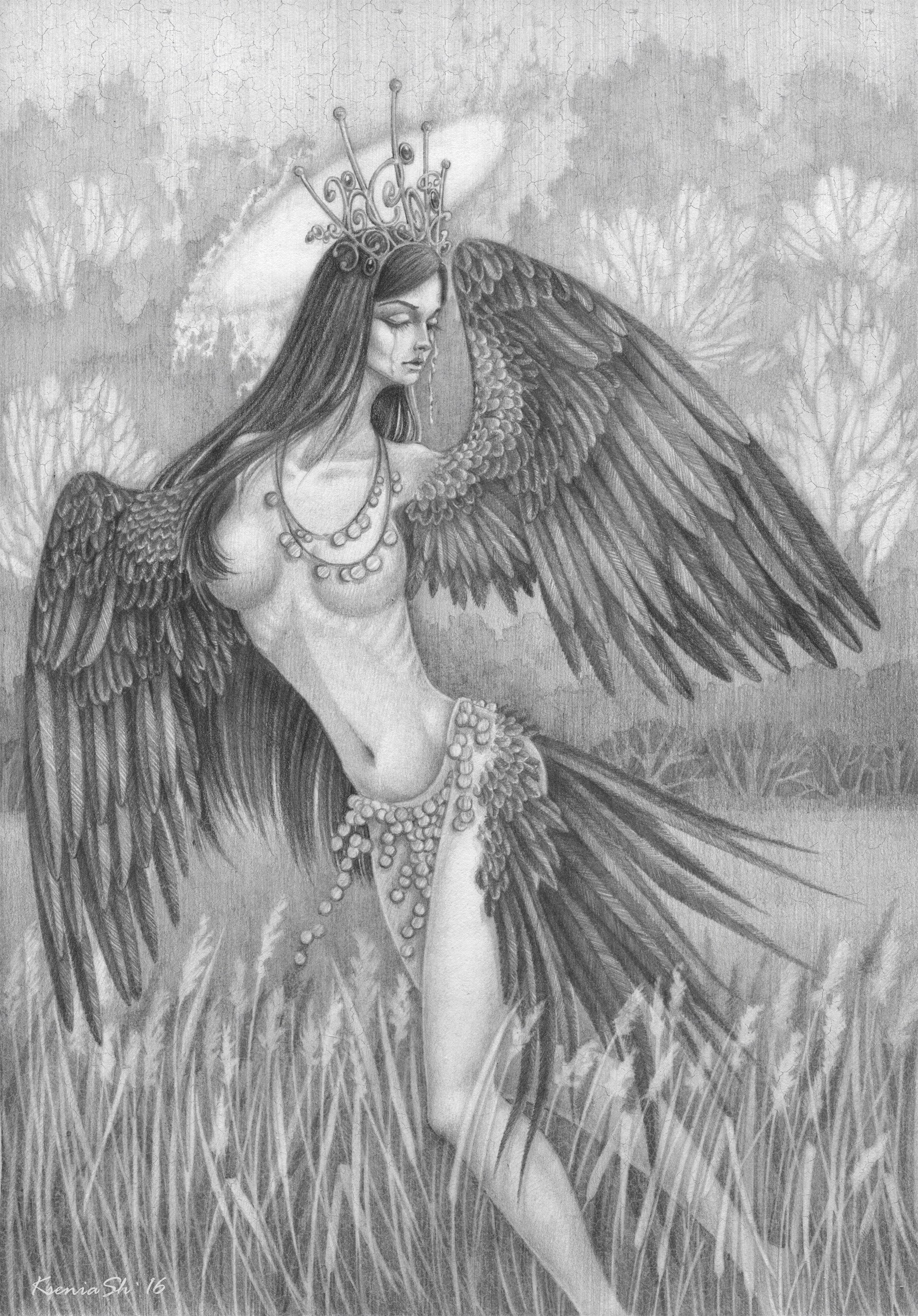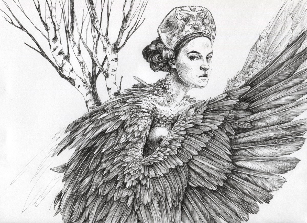 Рисунок птица сирин карандашом