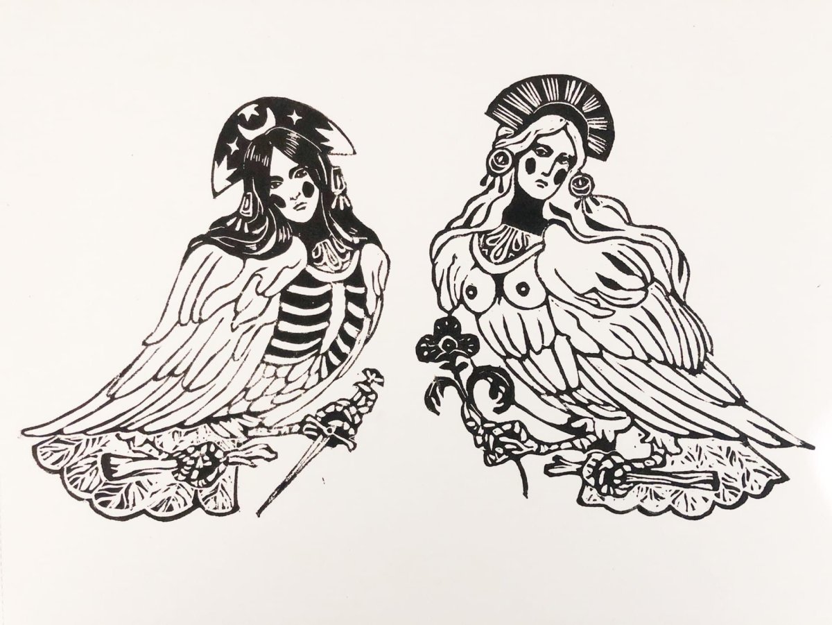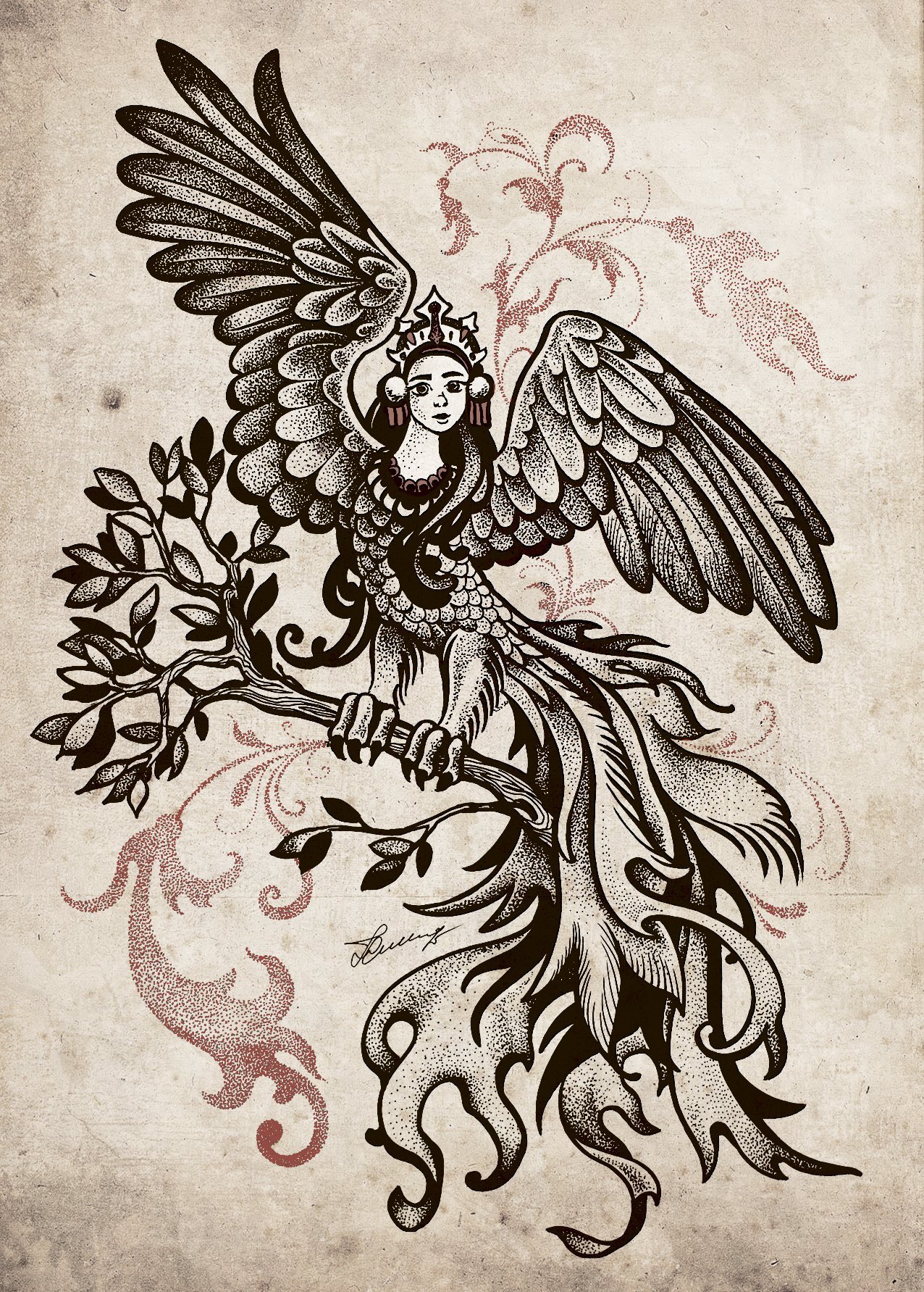 Сирин и алконост тату