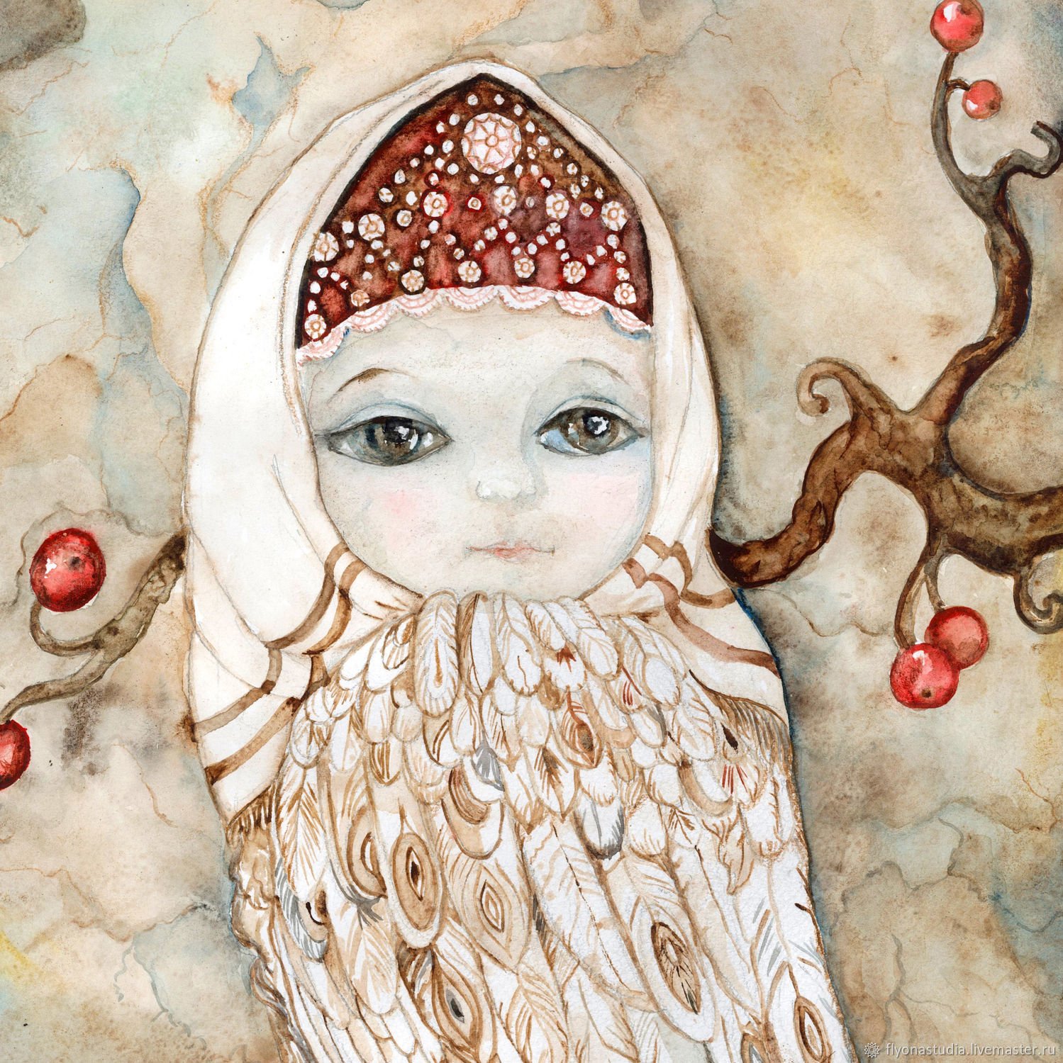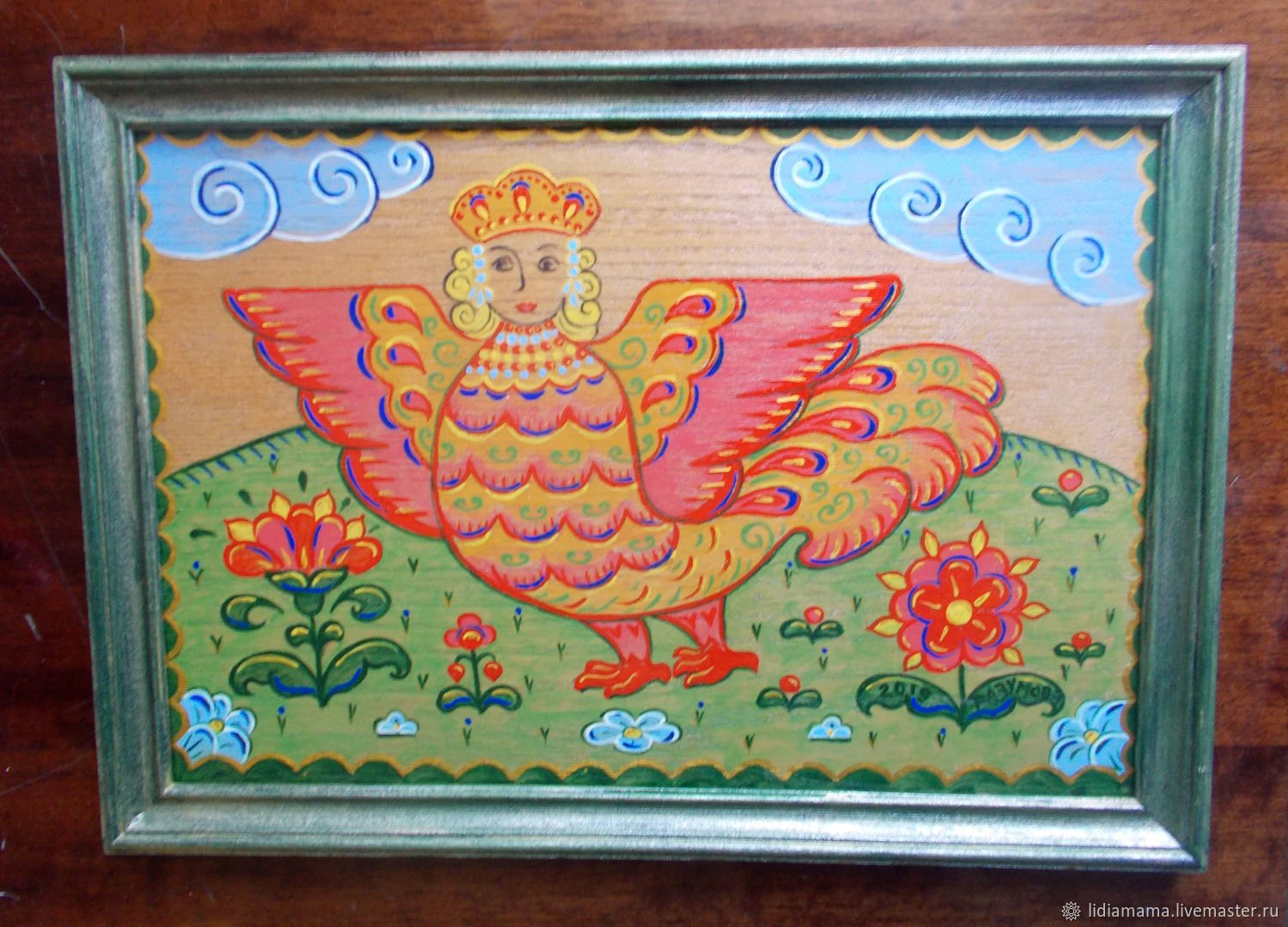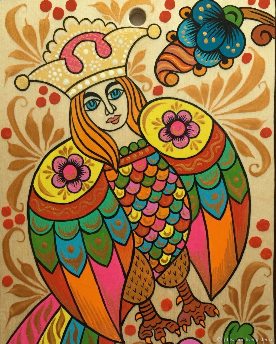 Наивная живопись птица Сирин