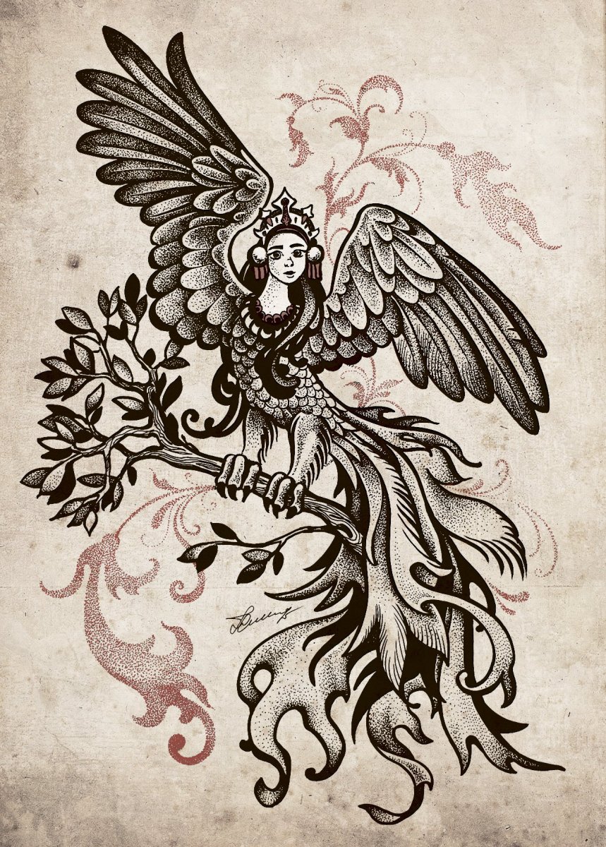 Сирин алконост Гамаюн тату