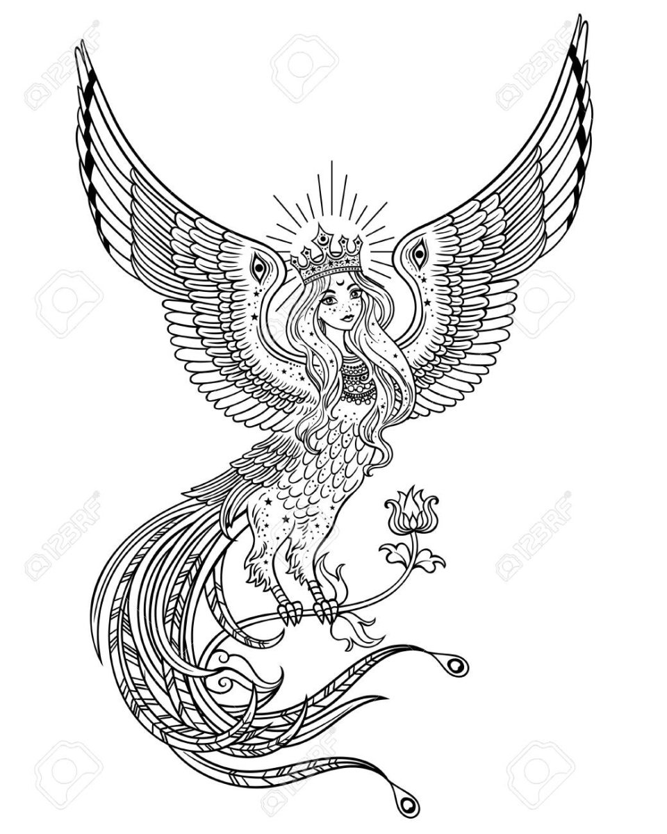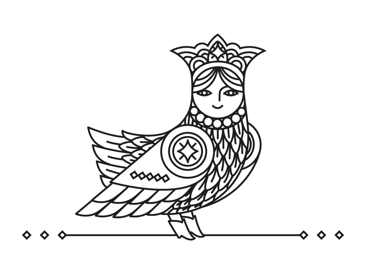 Птица Сирин раскраска для детей