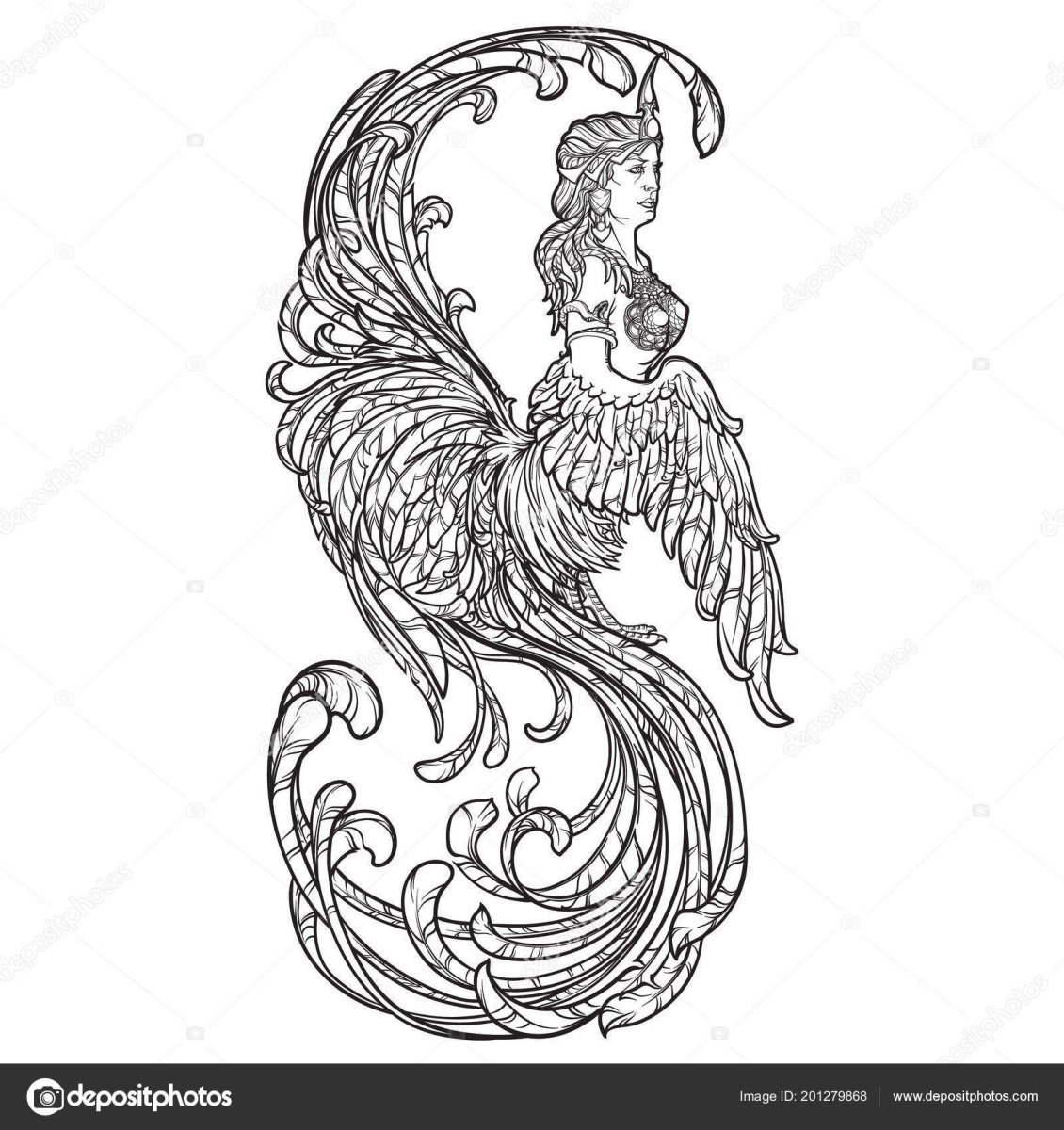 Сирена птица рисунок
