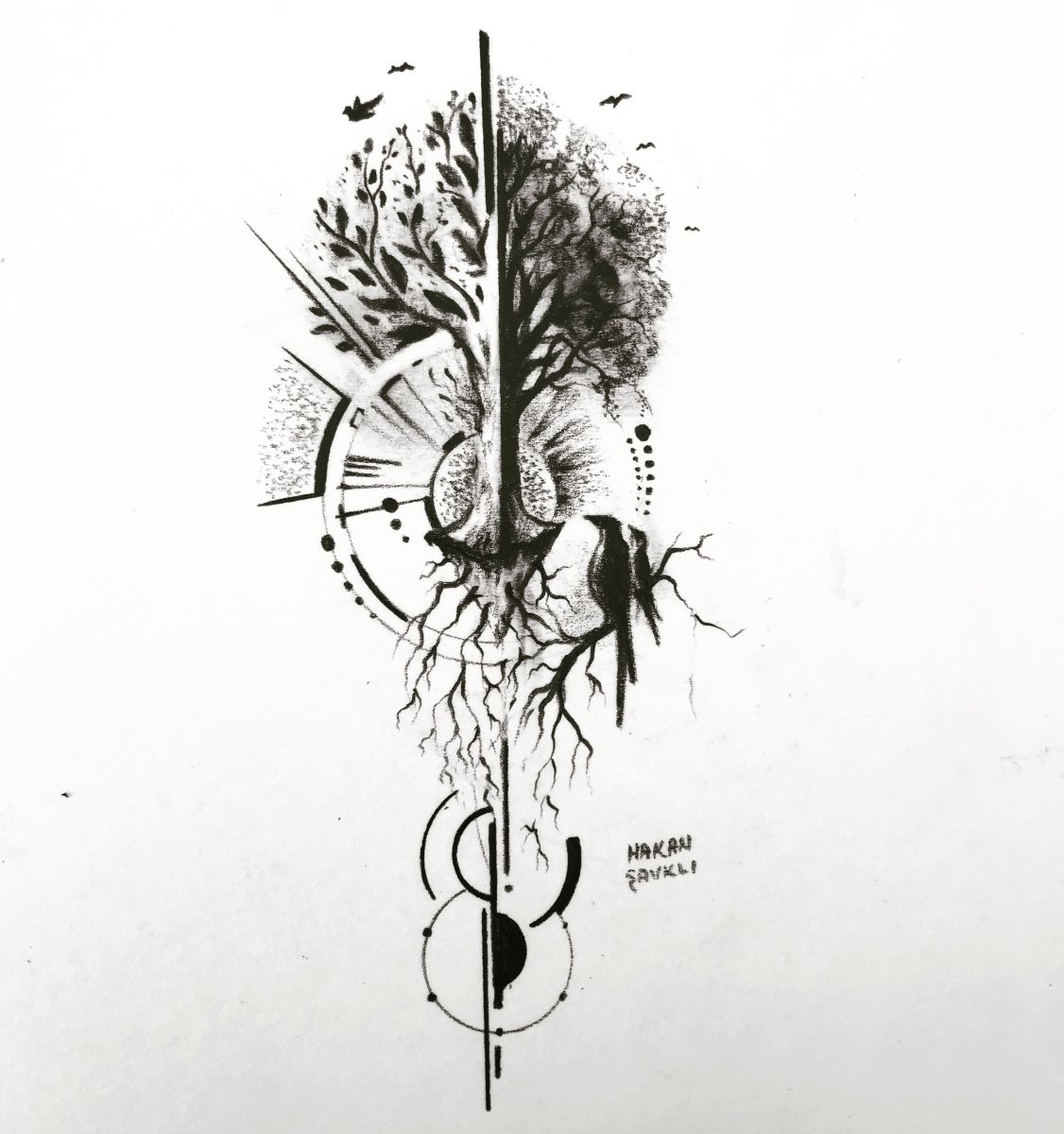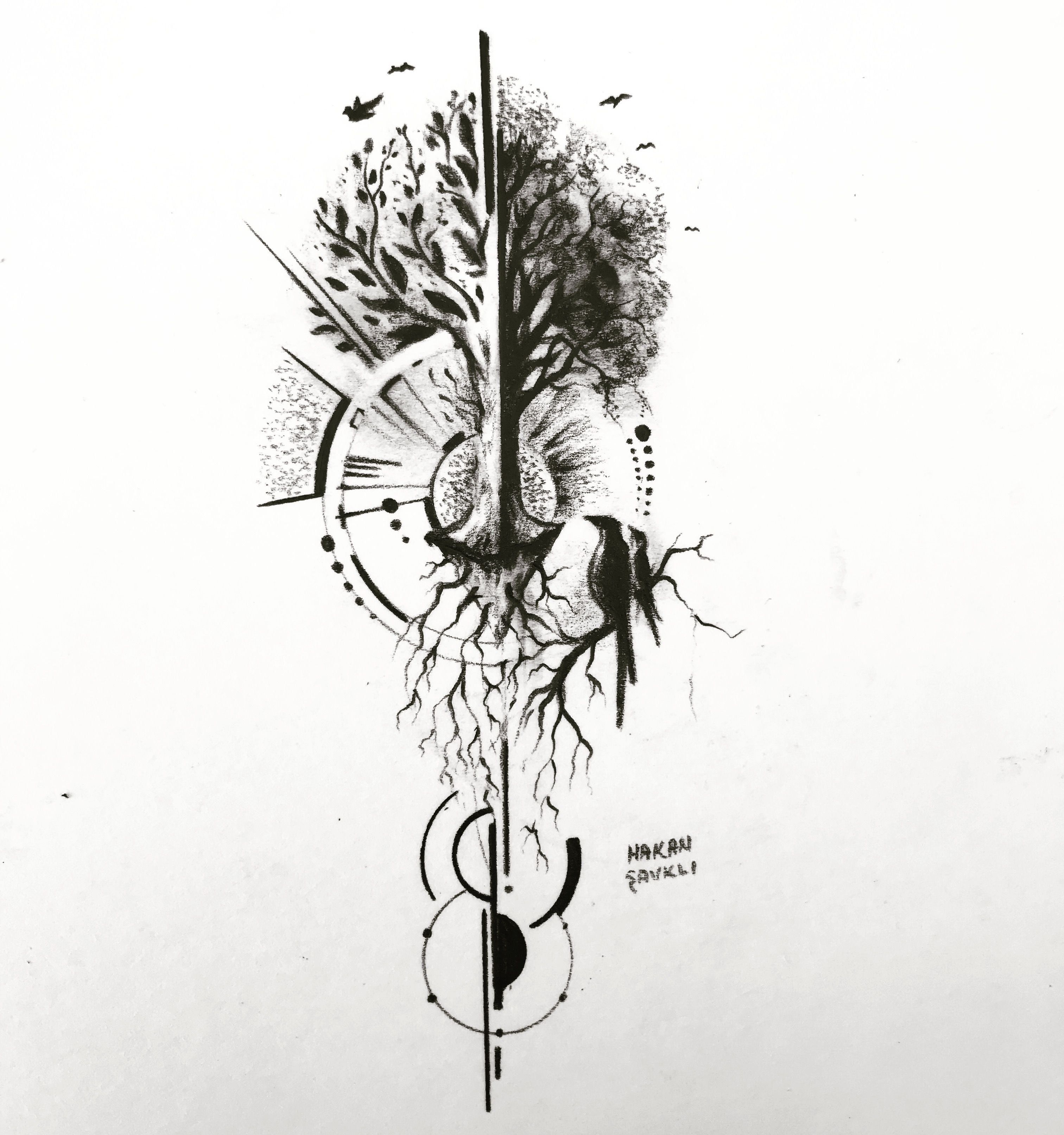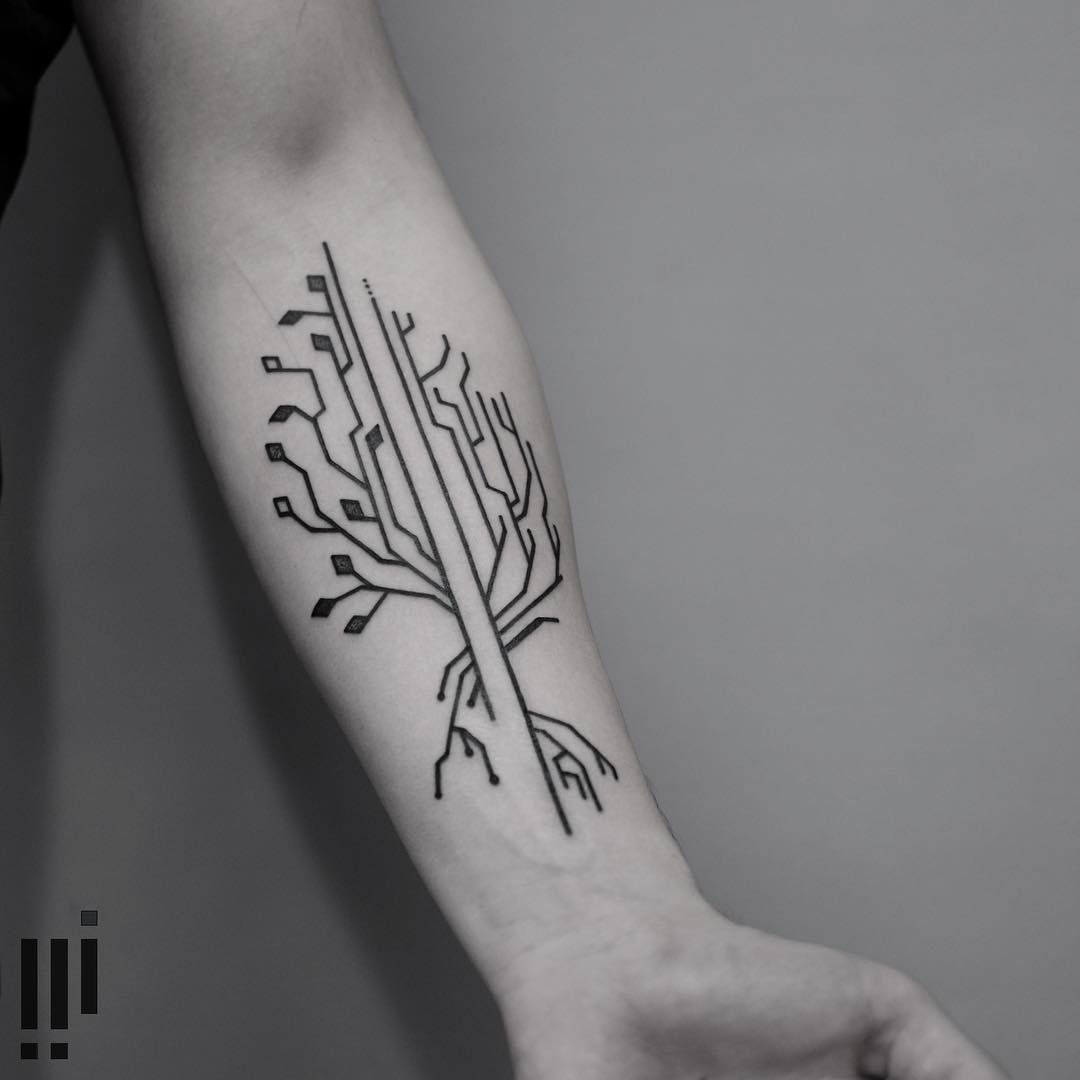 Тату дерево в стиле скетч