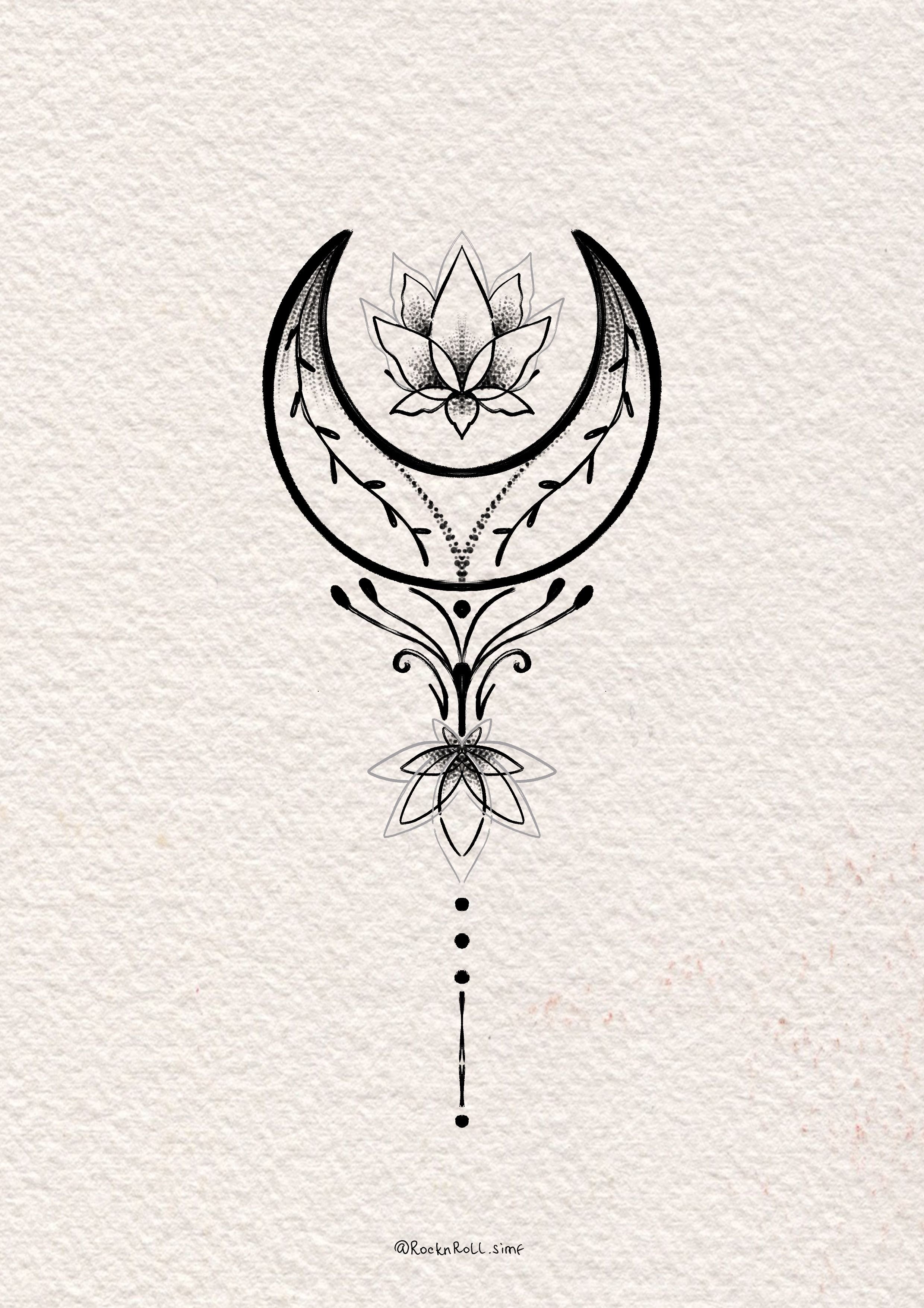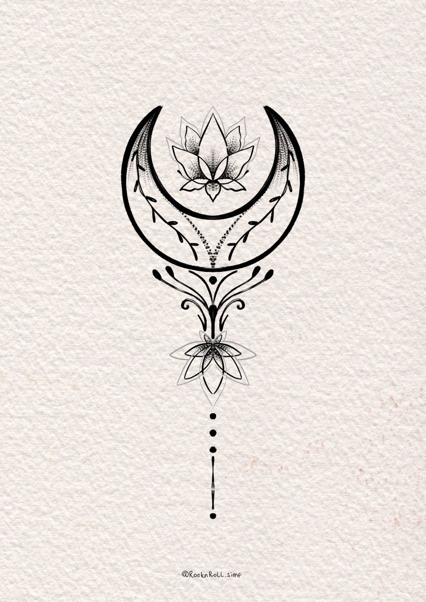Тату Лунница с лотосом