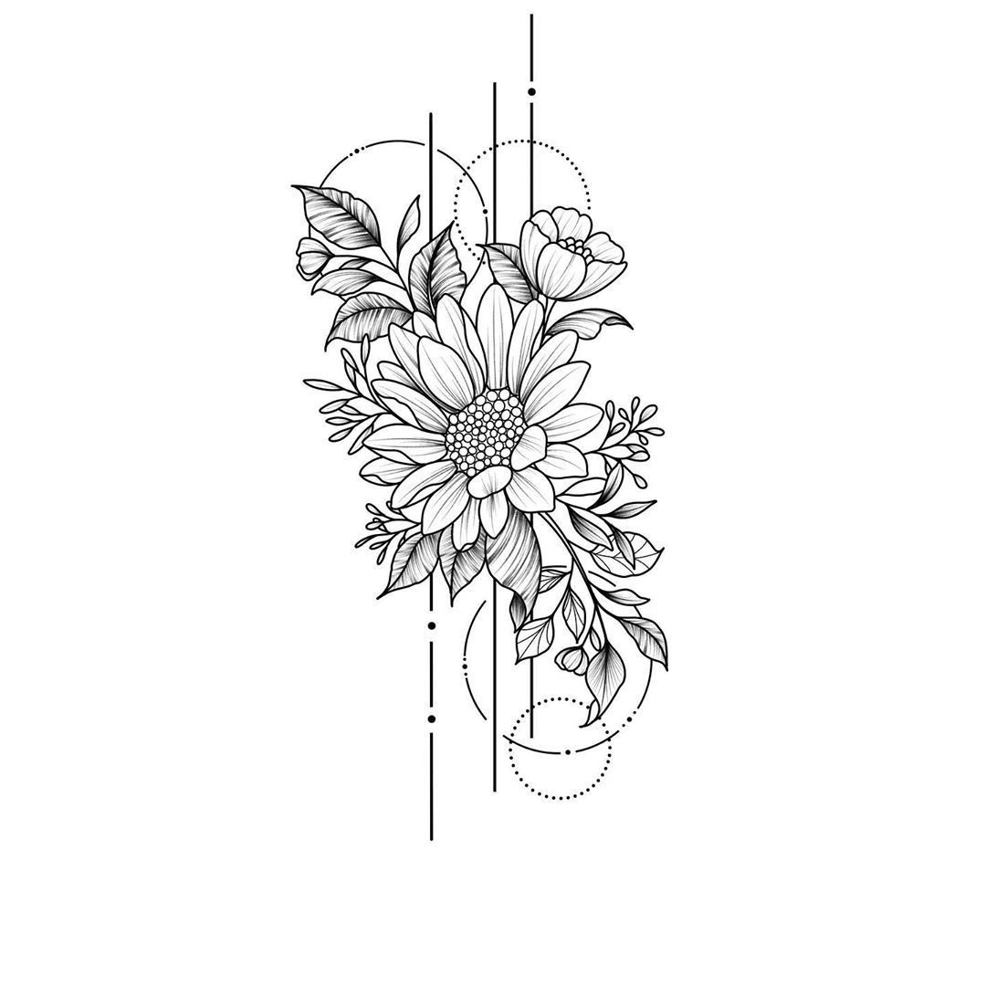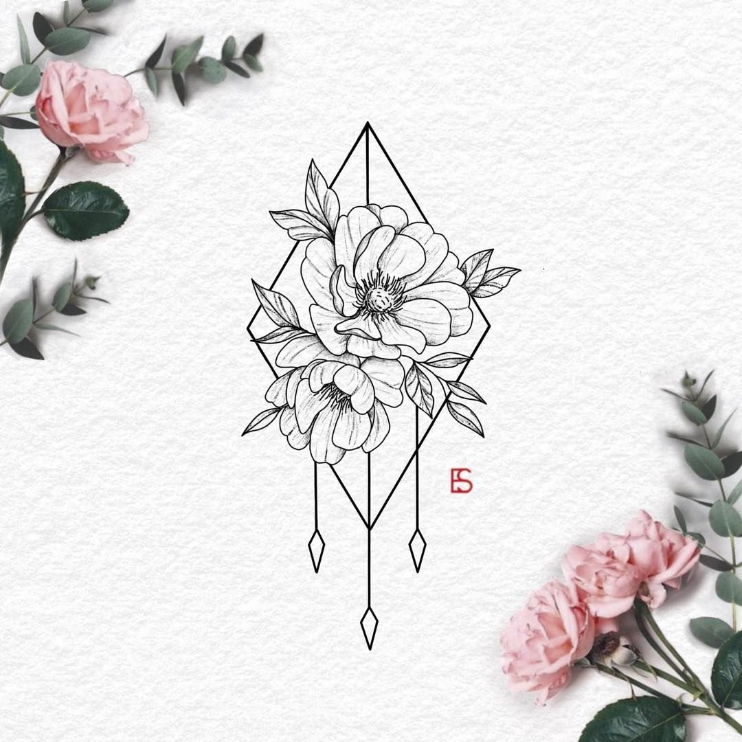 Тату пионы геометрия эскизы