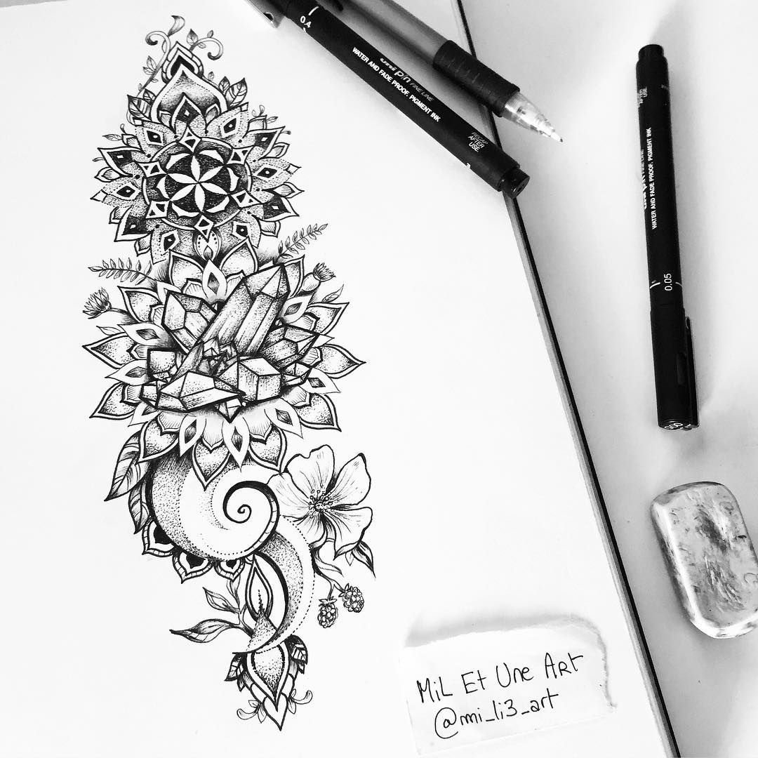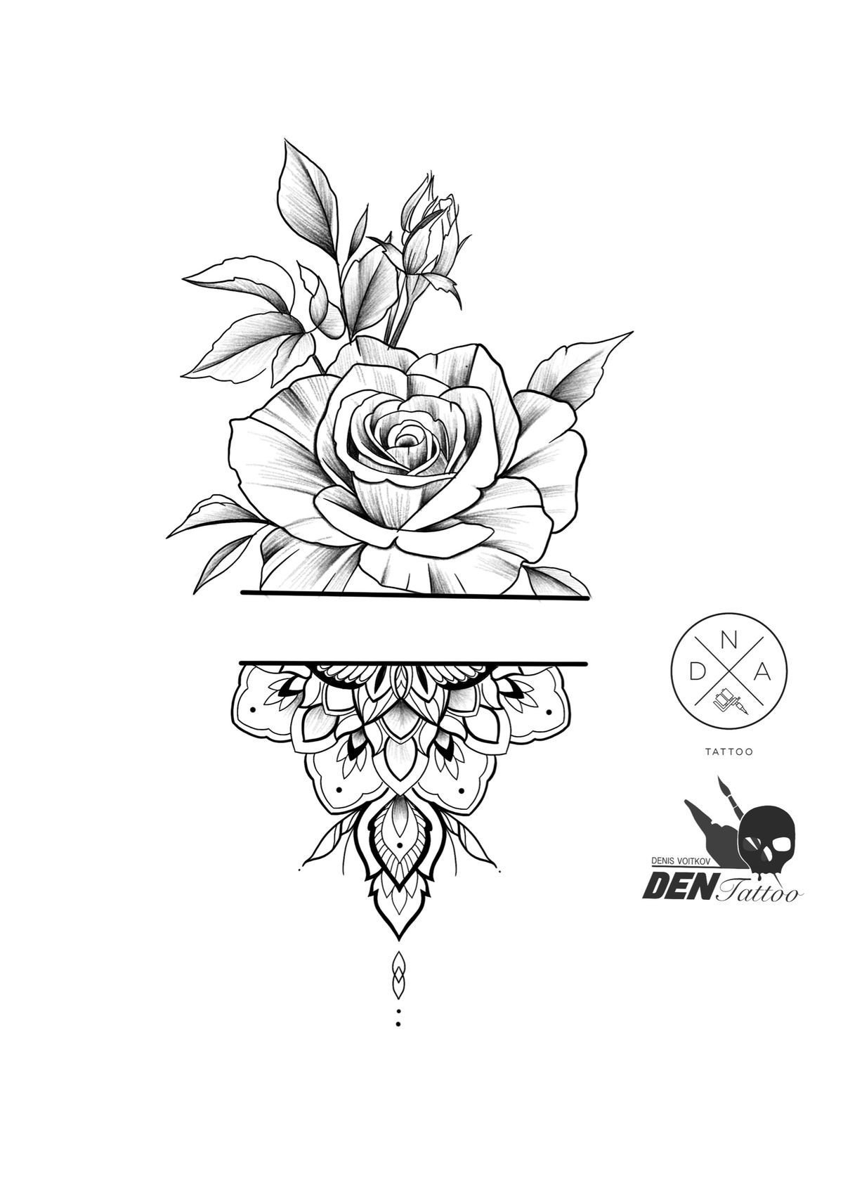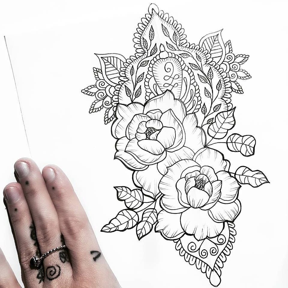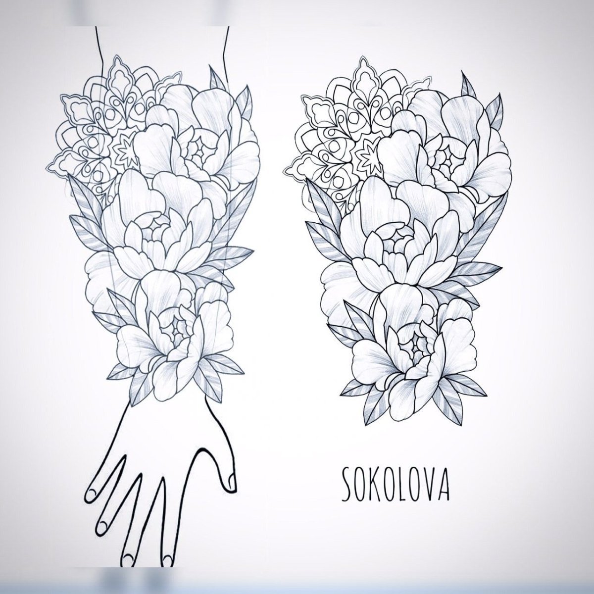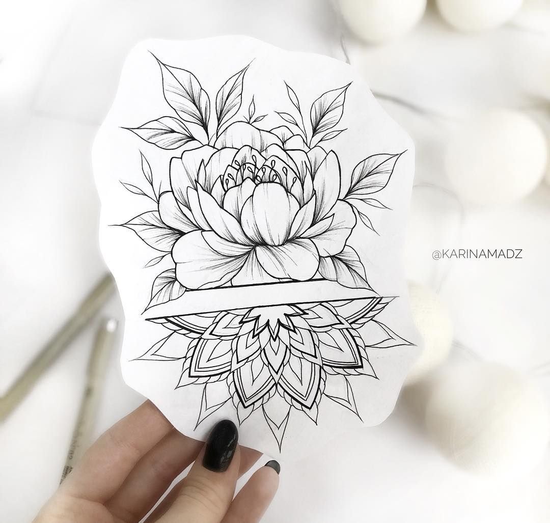 Эскиз тату цветы и Мандала