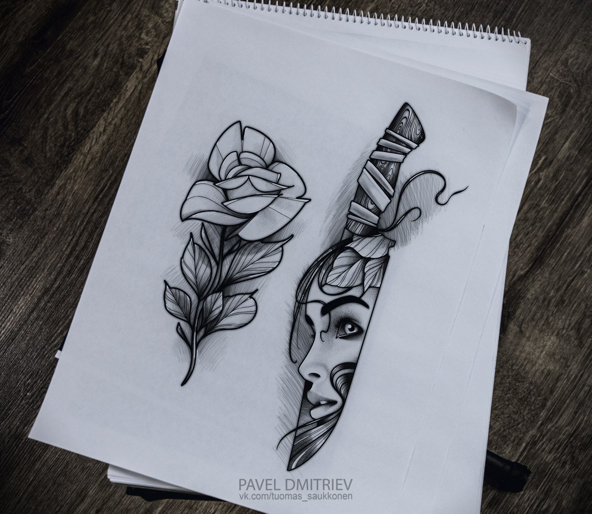 Эскизы тату на бумаге для девушек