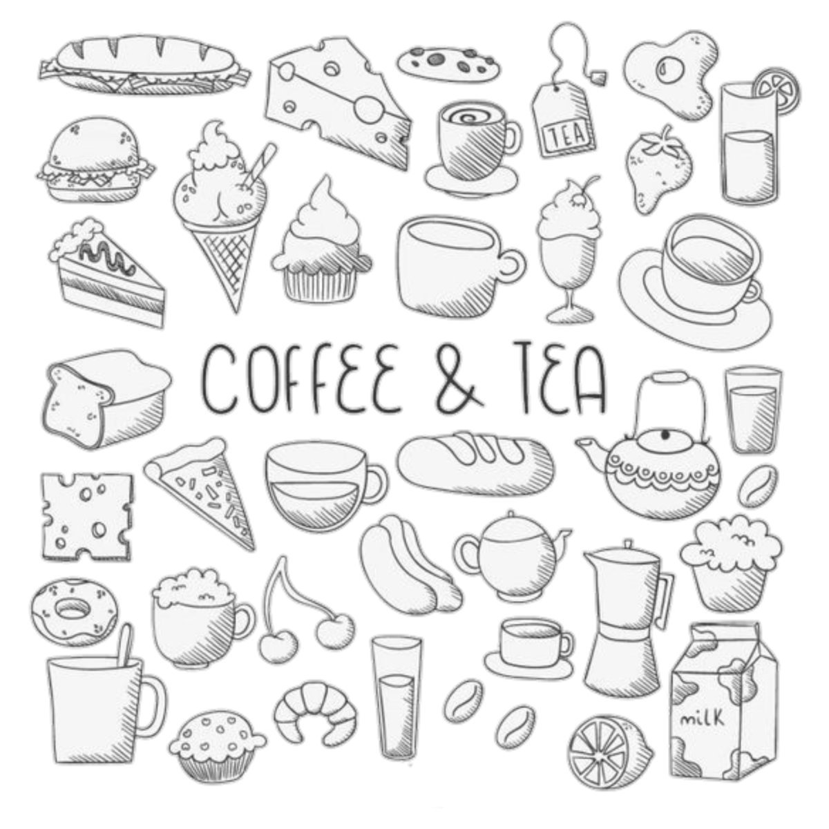 Красивые наклейки для скетчбука раскрашки чай кофе