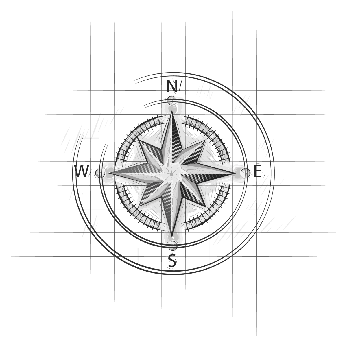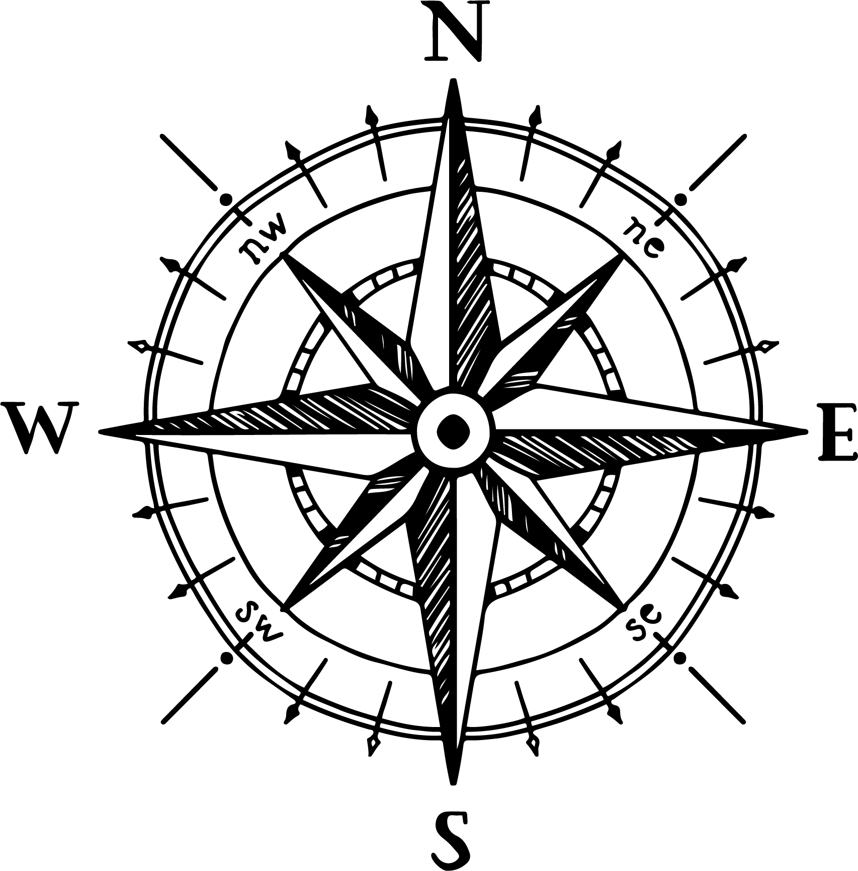Роза ветров черно белая