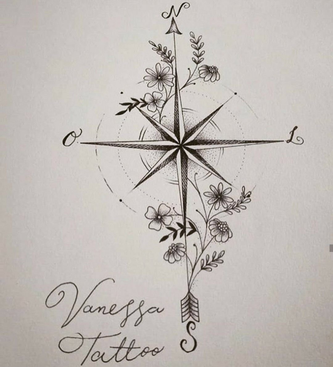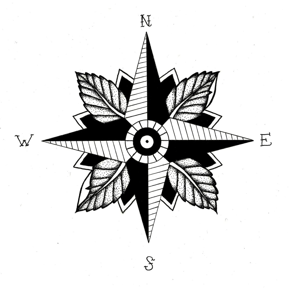 Роза ветров тату Графика