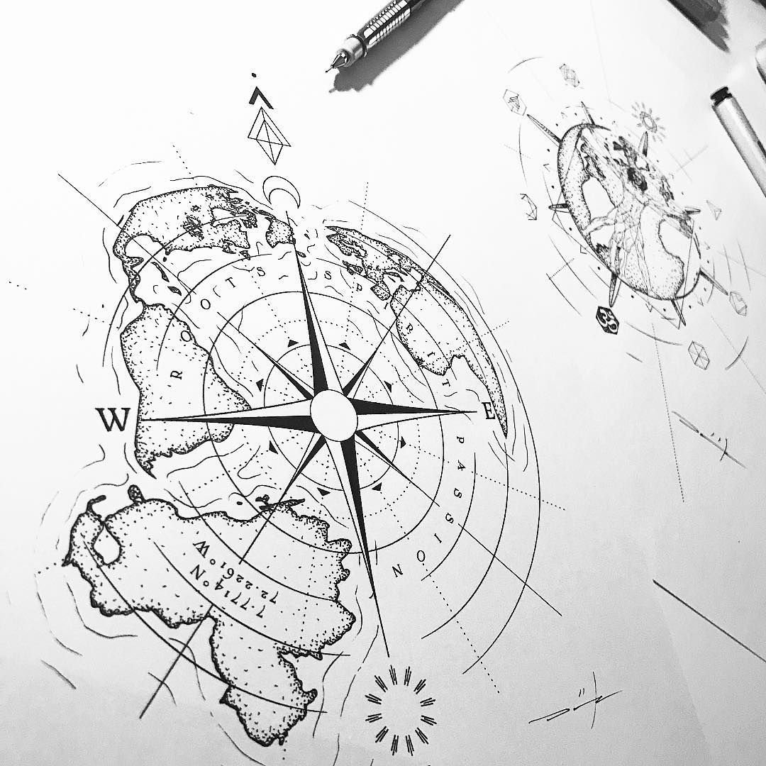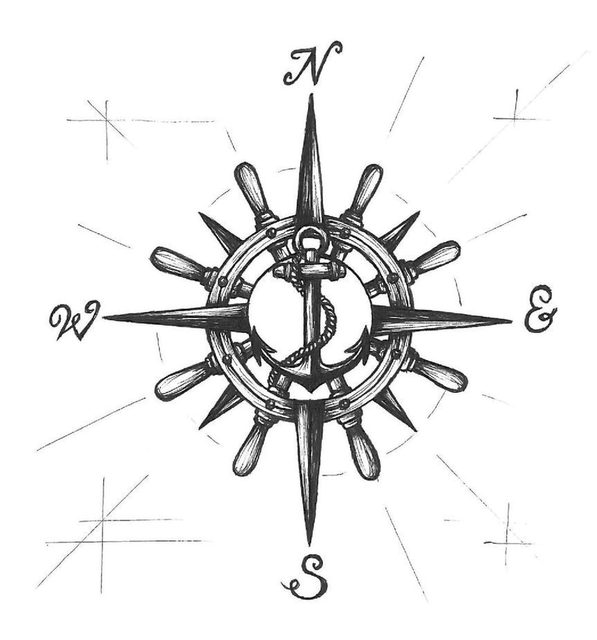 Тату компас роза ветров эскиз