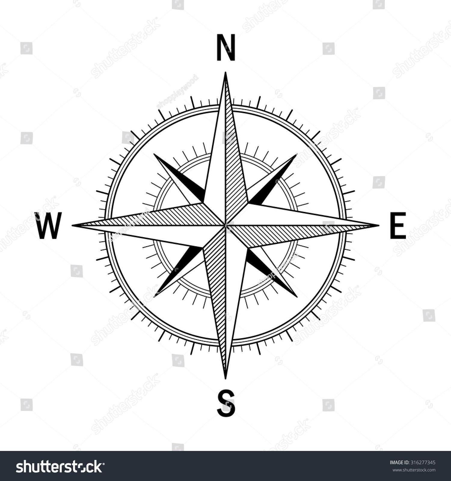 Компас с розой ветров контур картинка