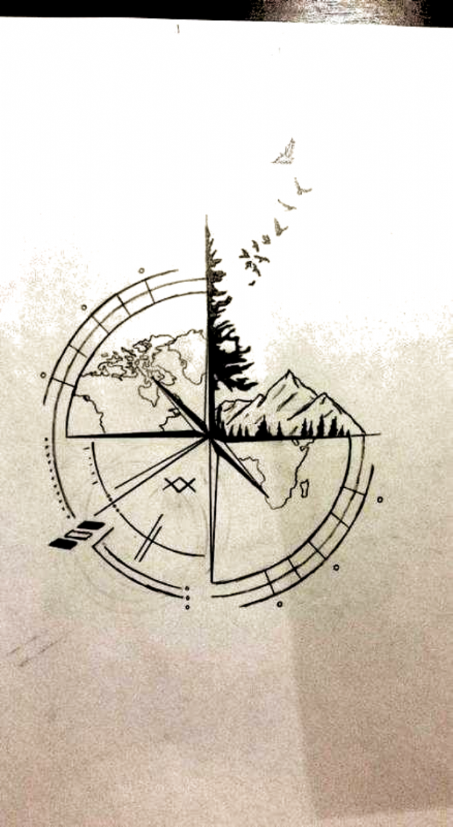 Компас тату эскиз