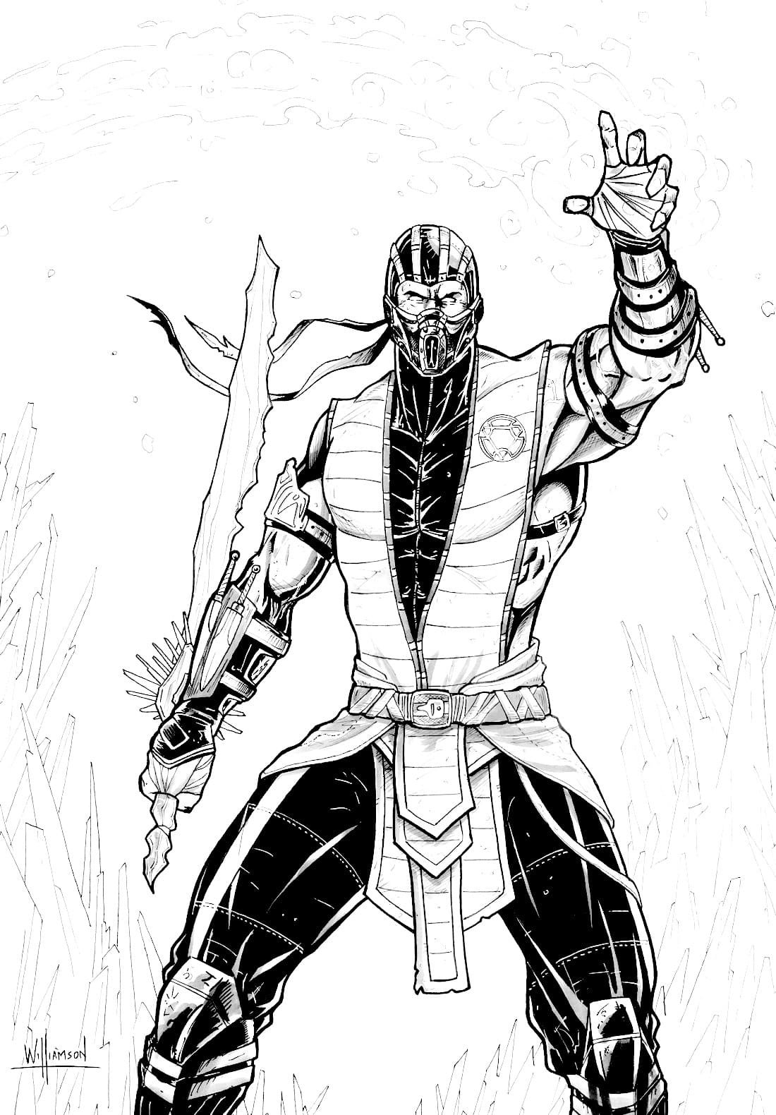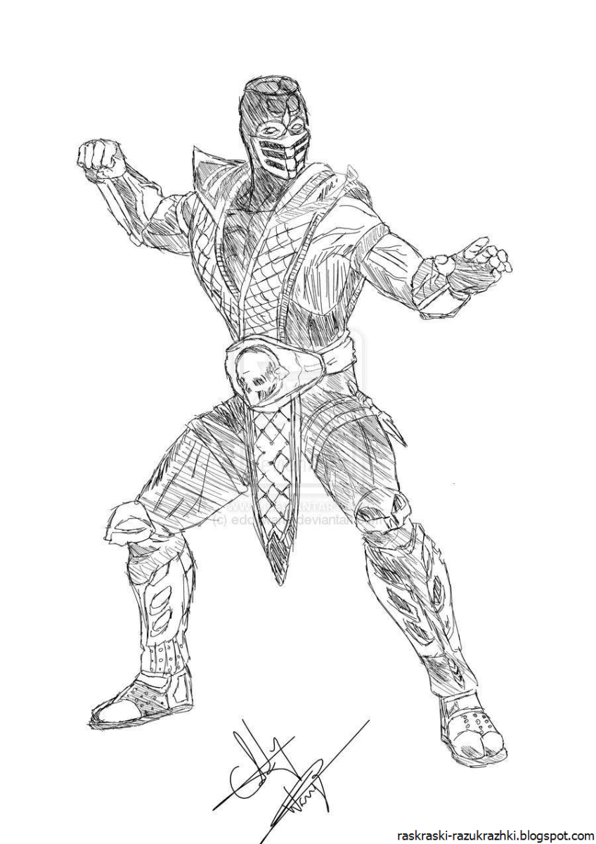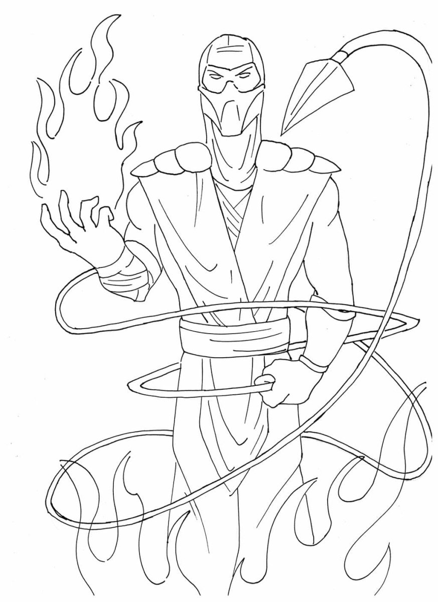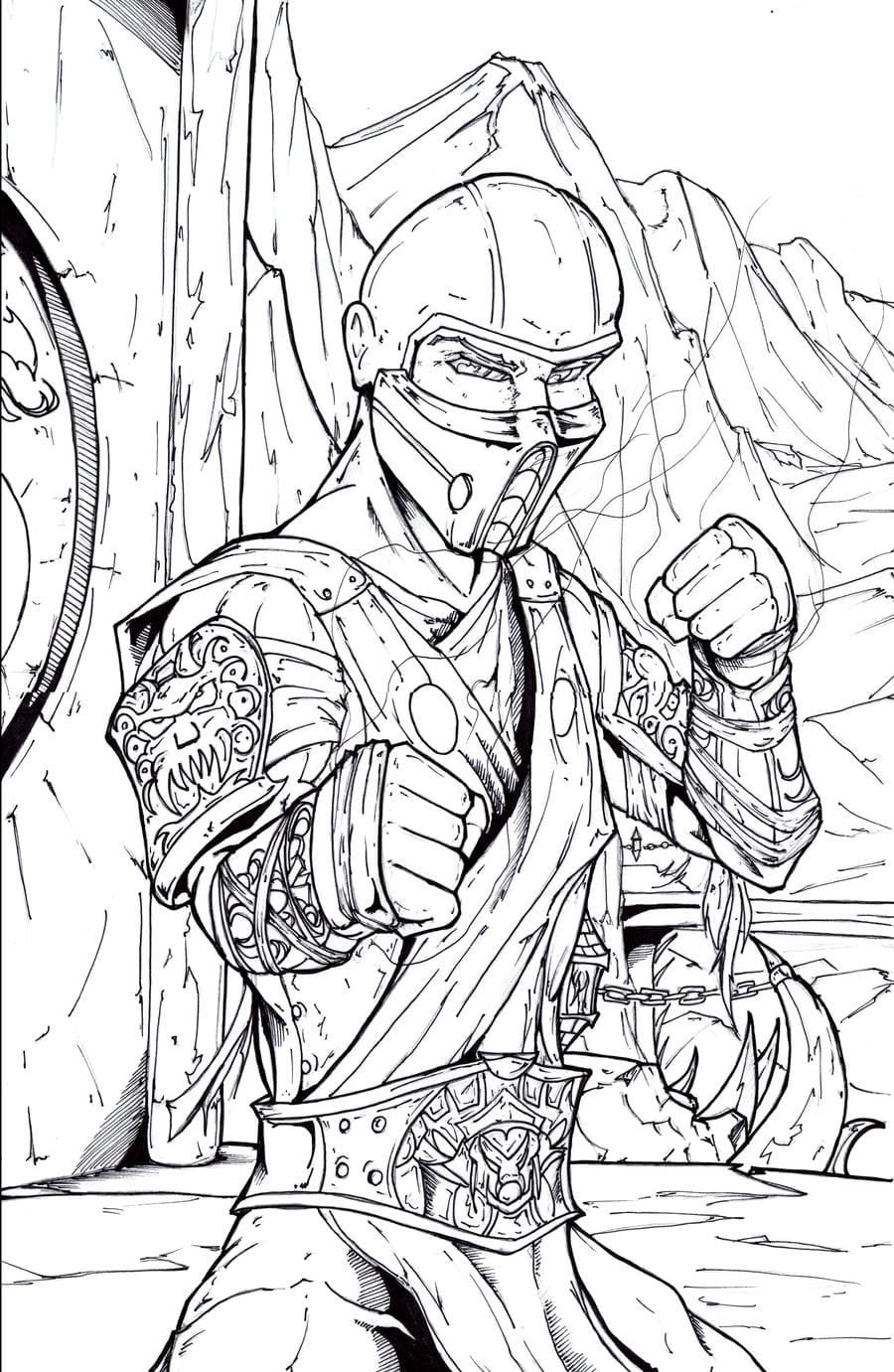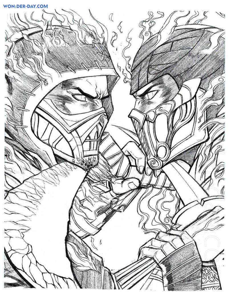 Раскраски мортал комбат битва скорпиона и Сабзиро