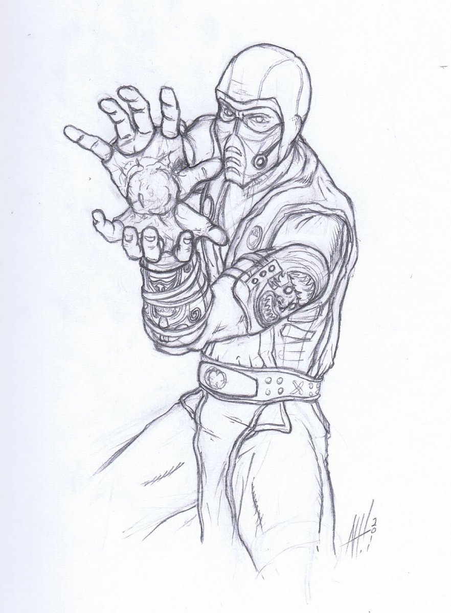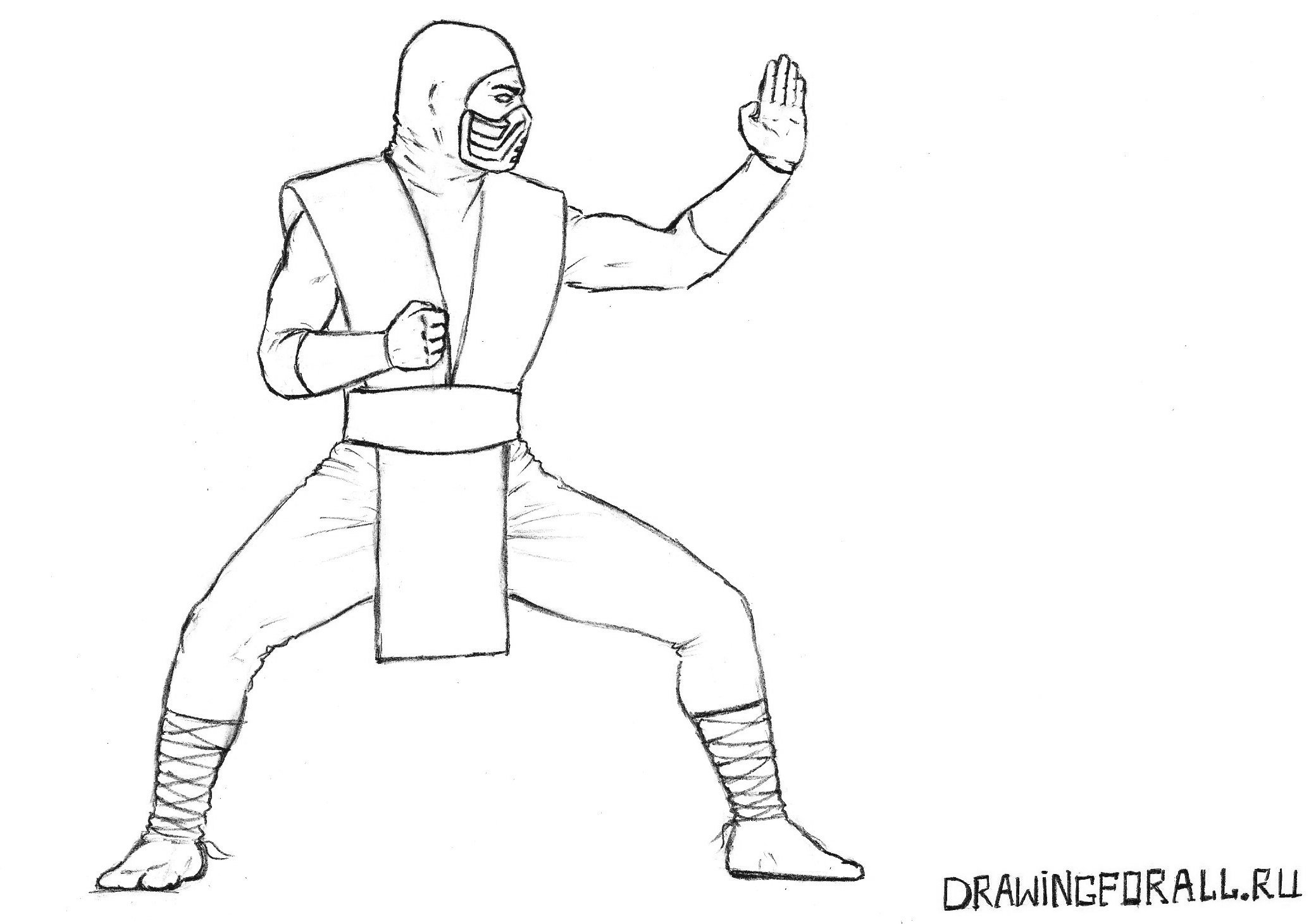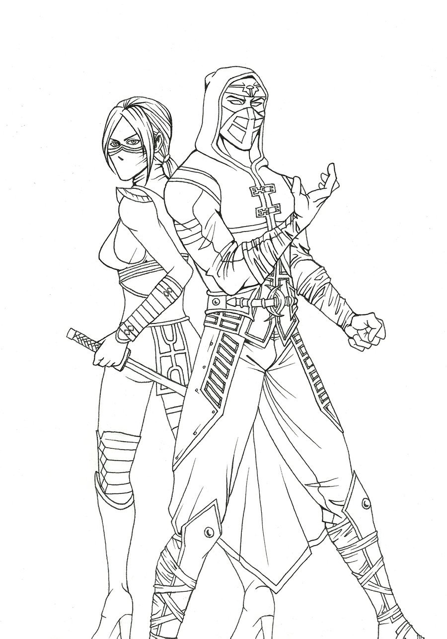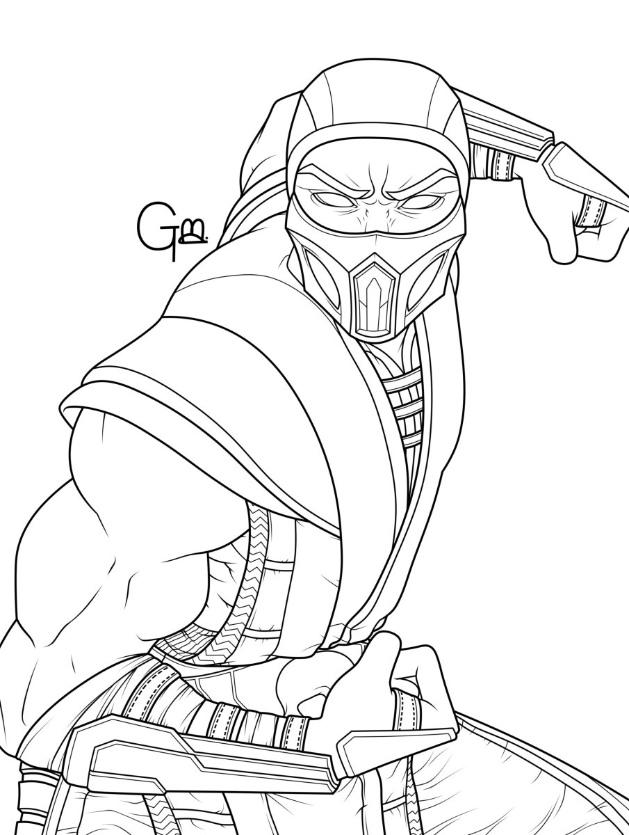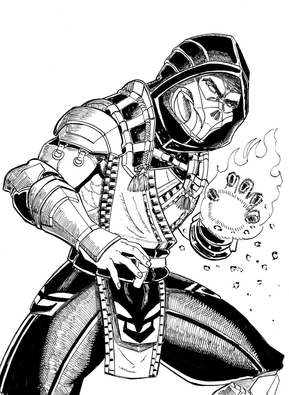 Раскраски мортал комбат битва скорпиона и Сабзиро