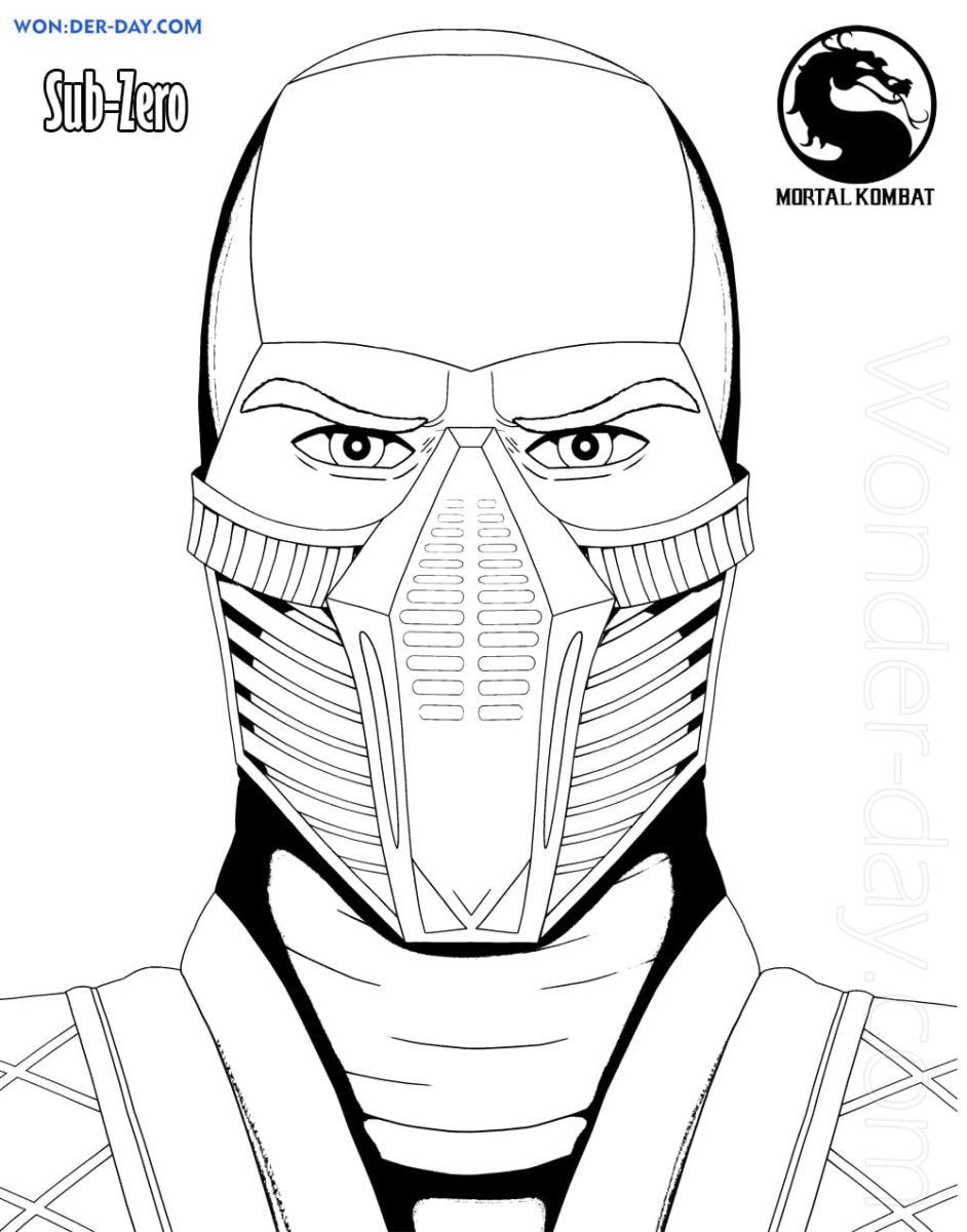 Раскраска Mortal Kombat саб Зиро и Скорпион