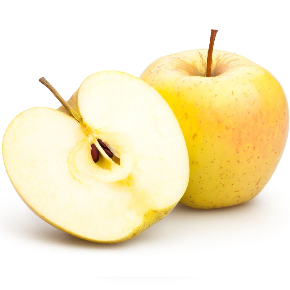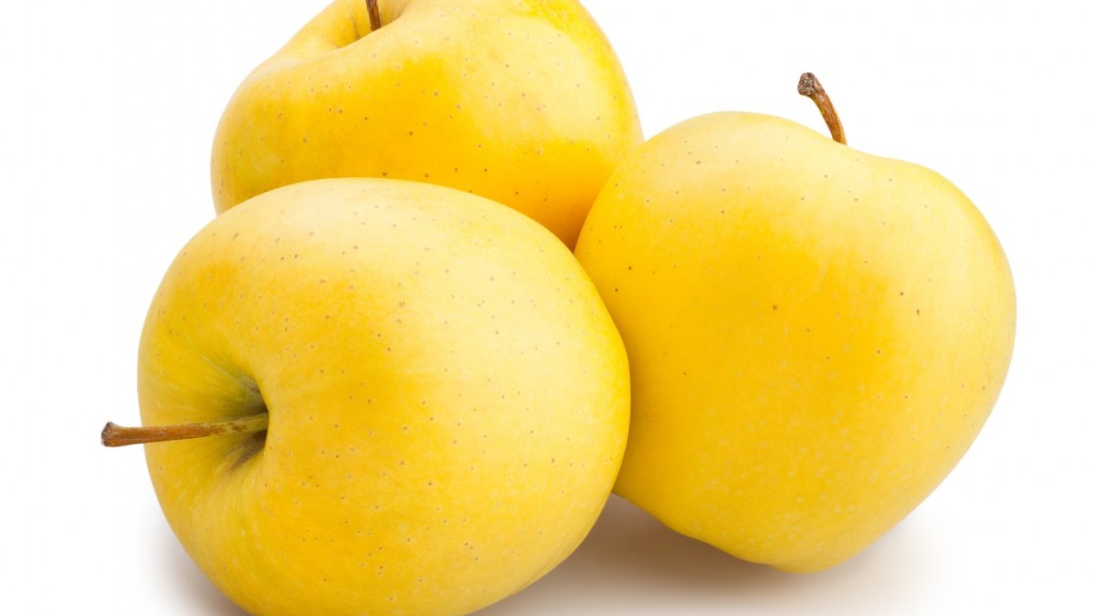 Яблоко Голден Делишес Узбекистан на белом фоне