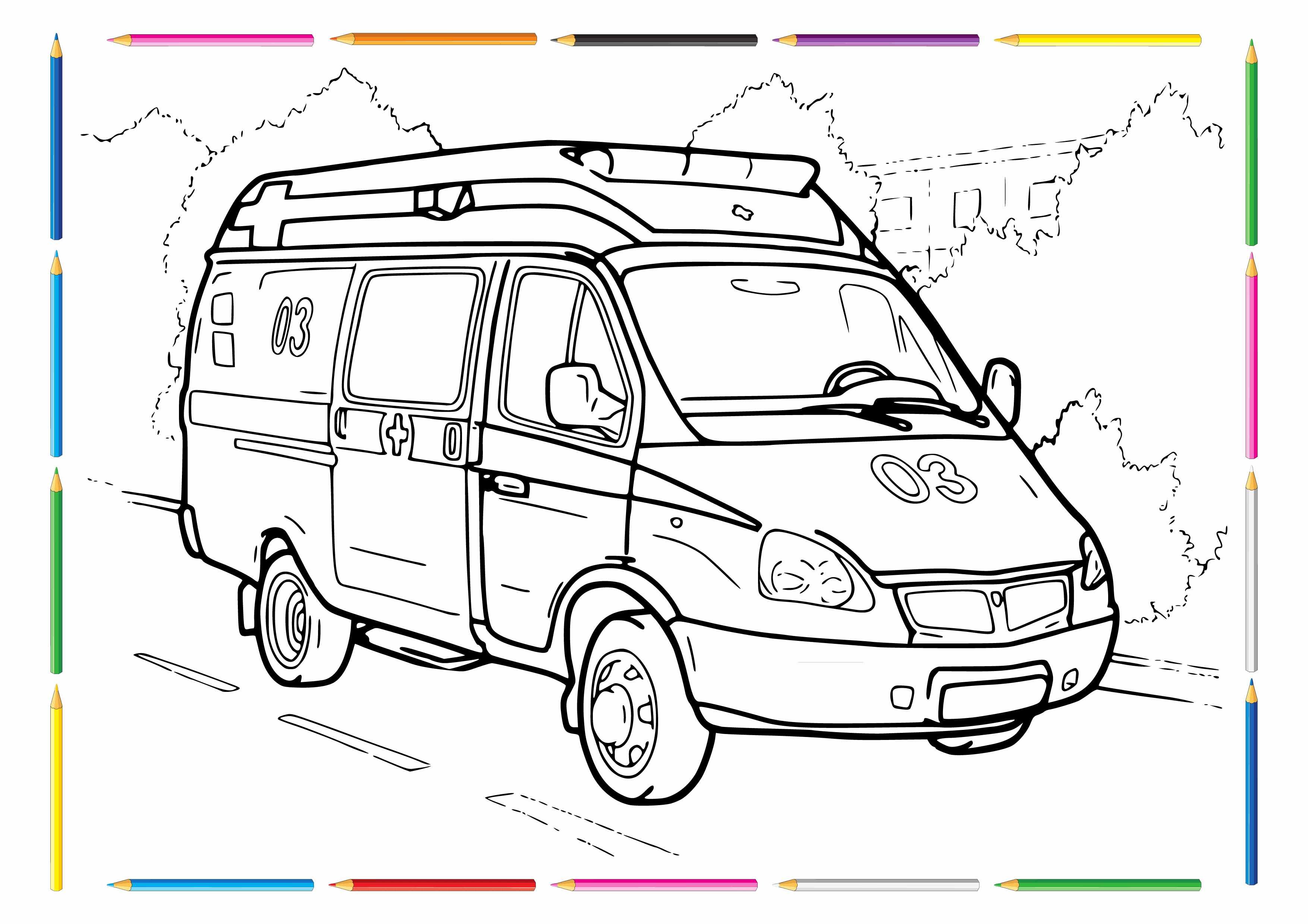Скорая машина раскраска для детей