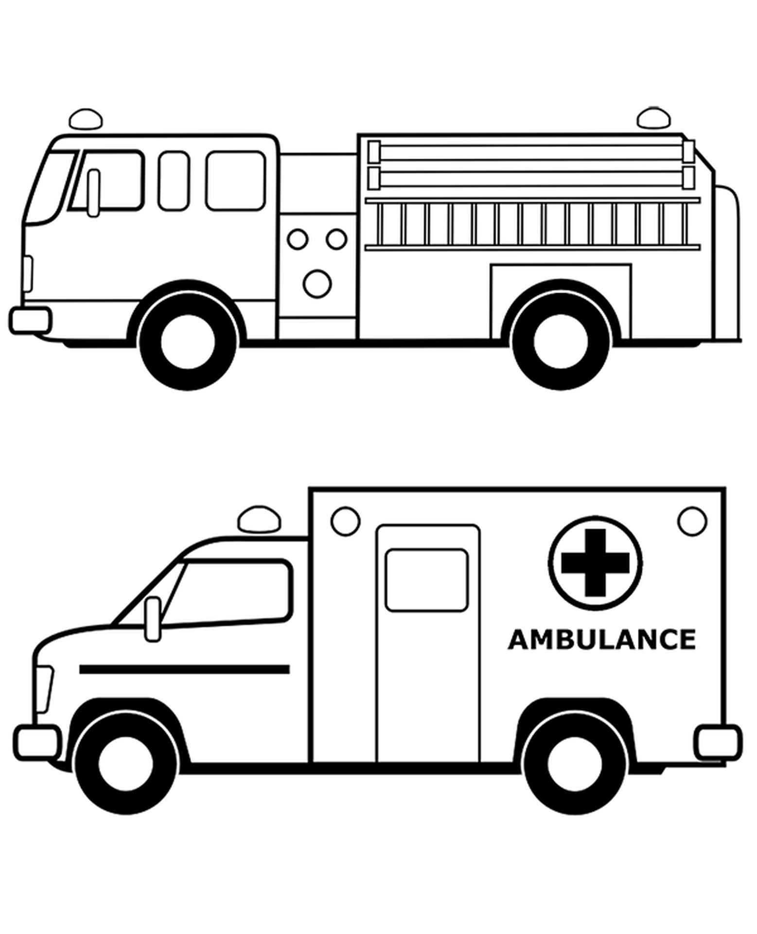 Скорая пожарная машина раскраска для малышей