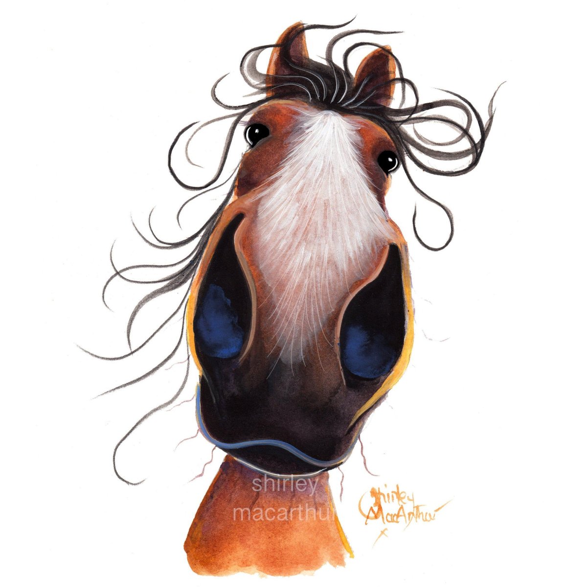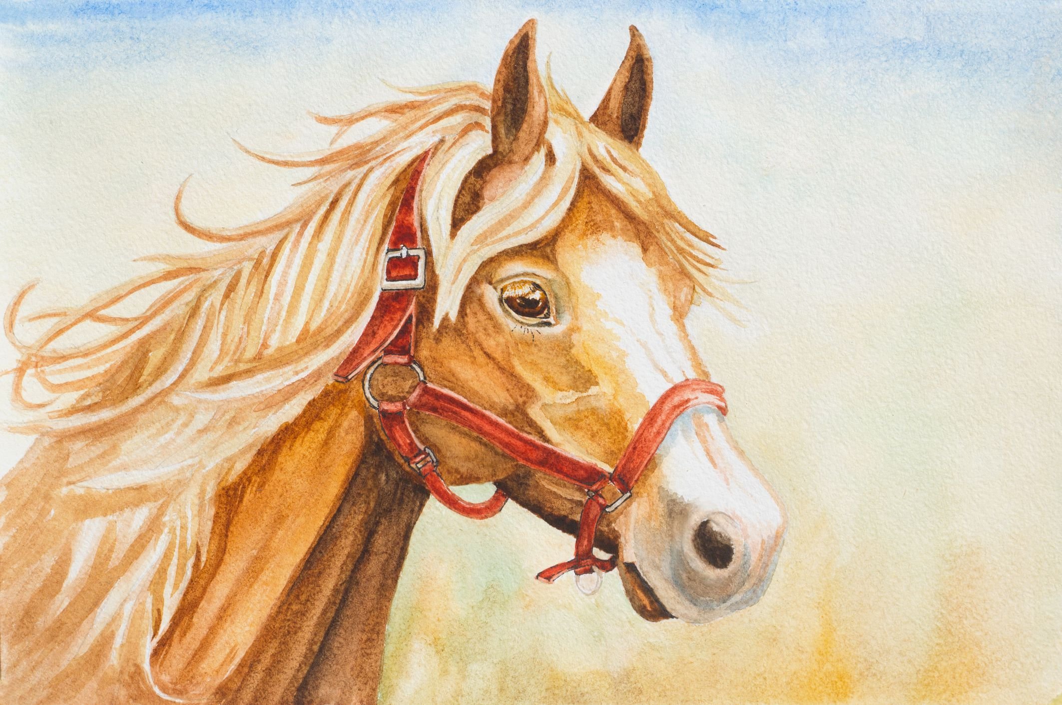 Морда лошади акварелью
