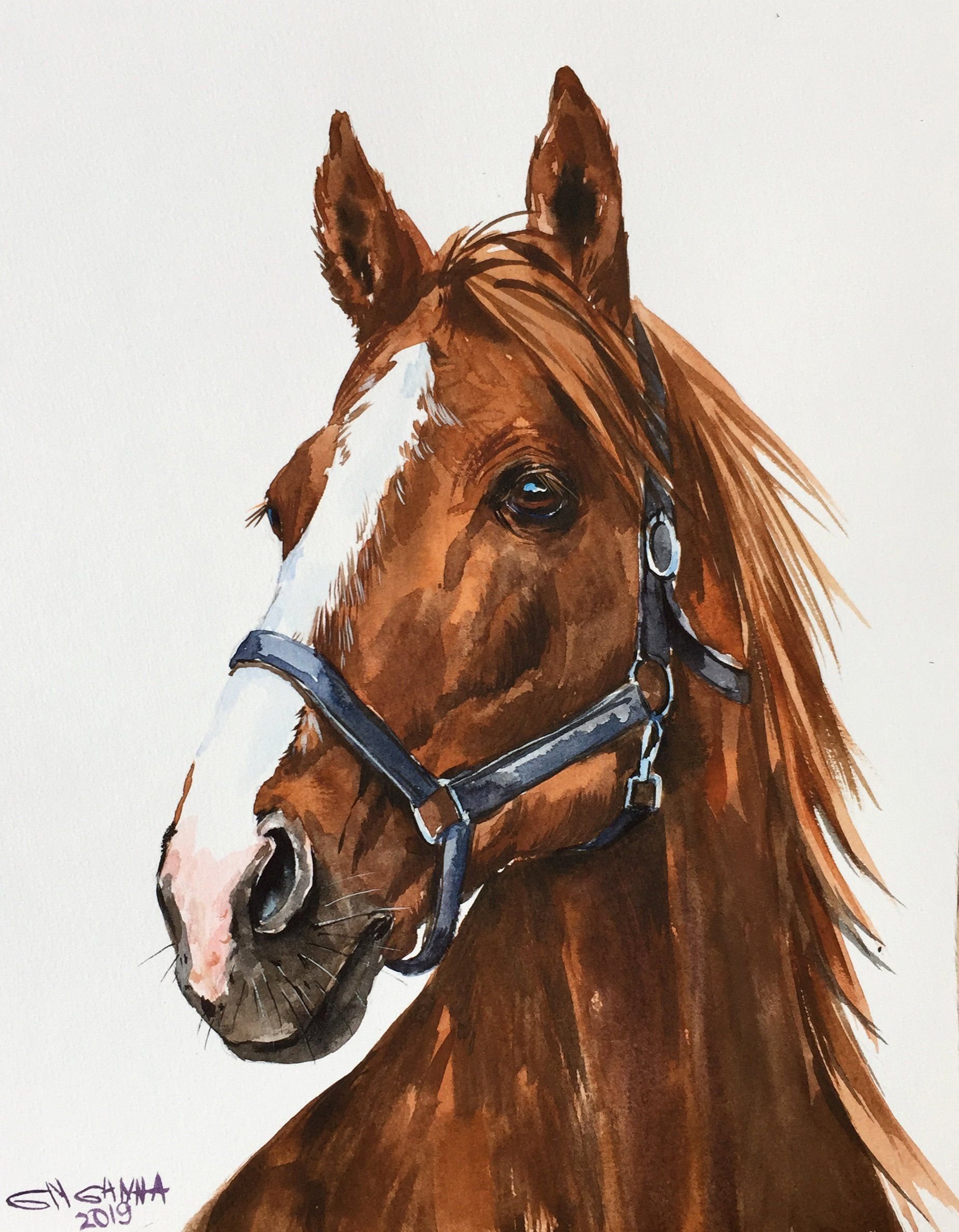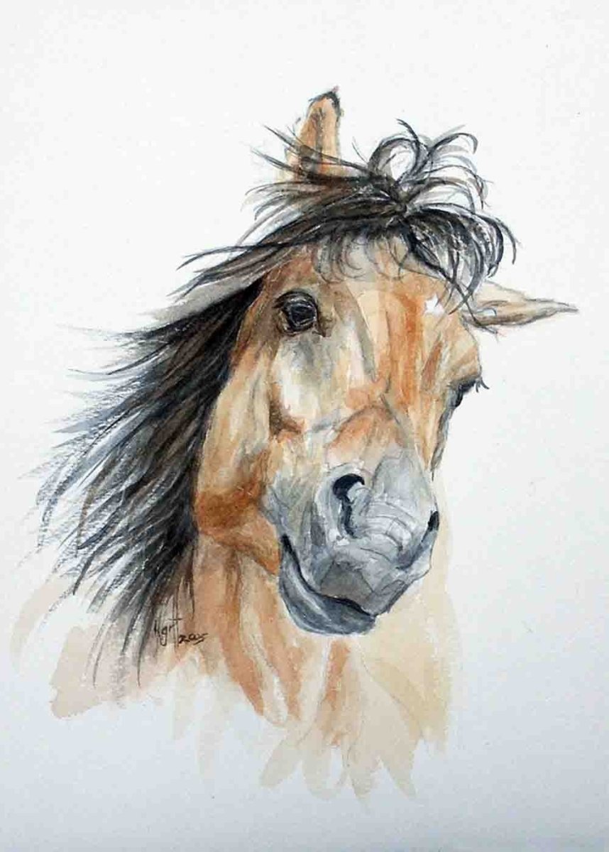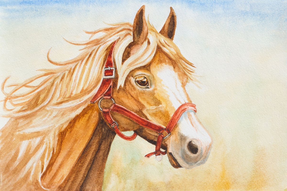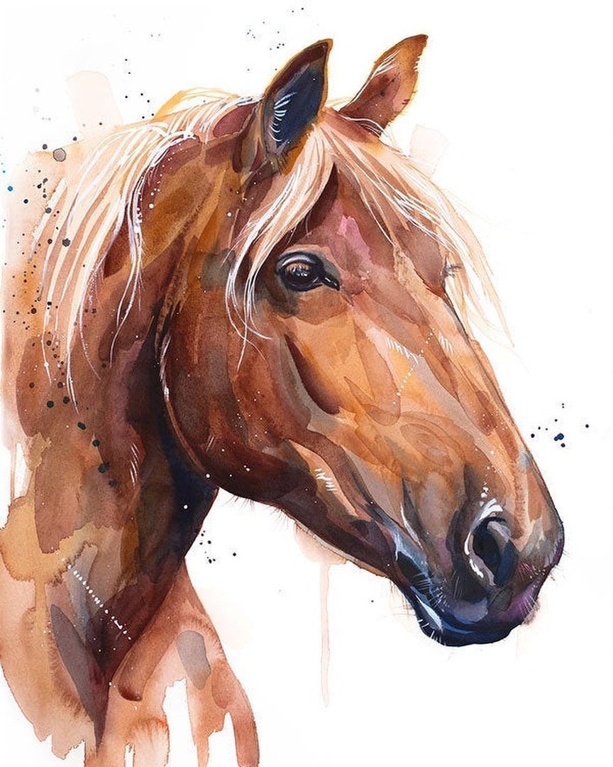 Лошадь акварелью