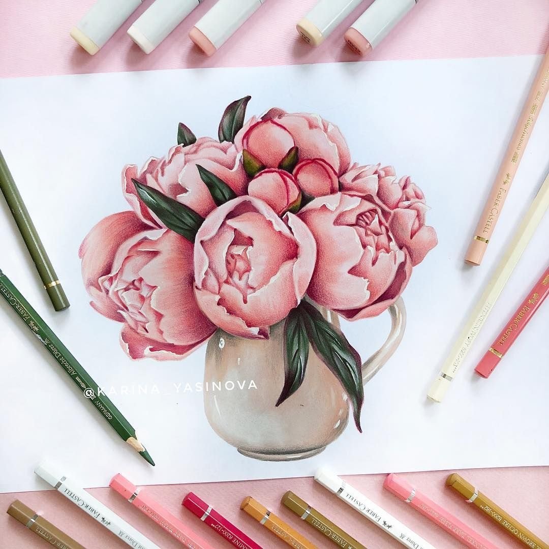 Пионы скетчинг маркерами