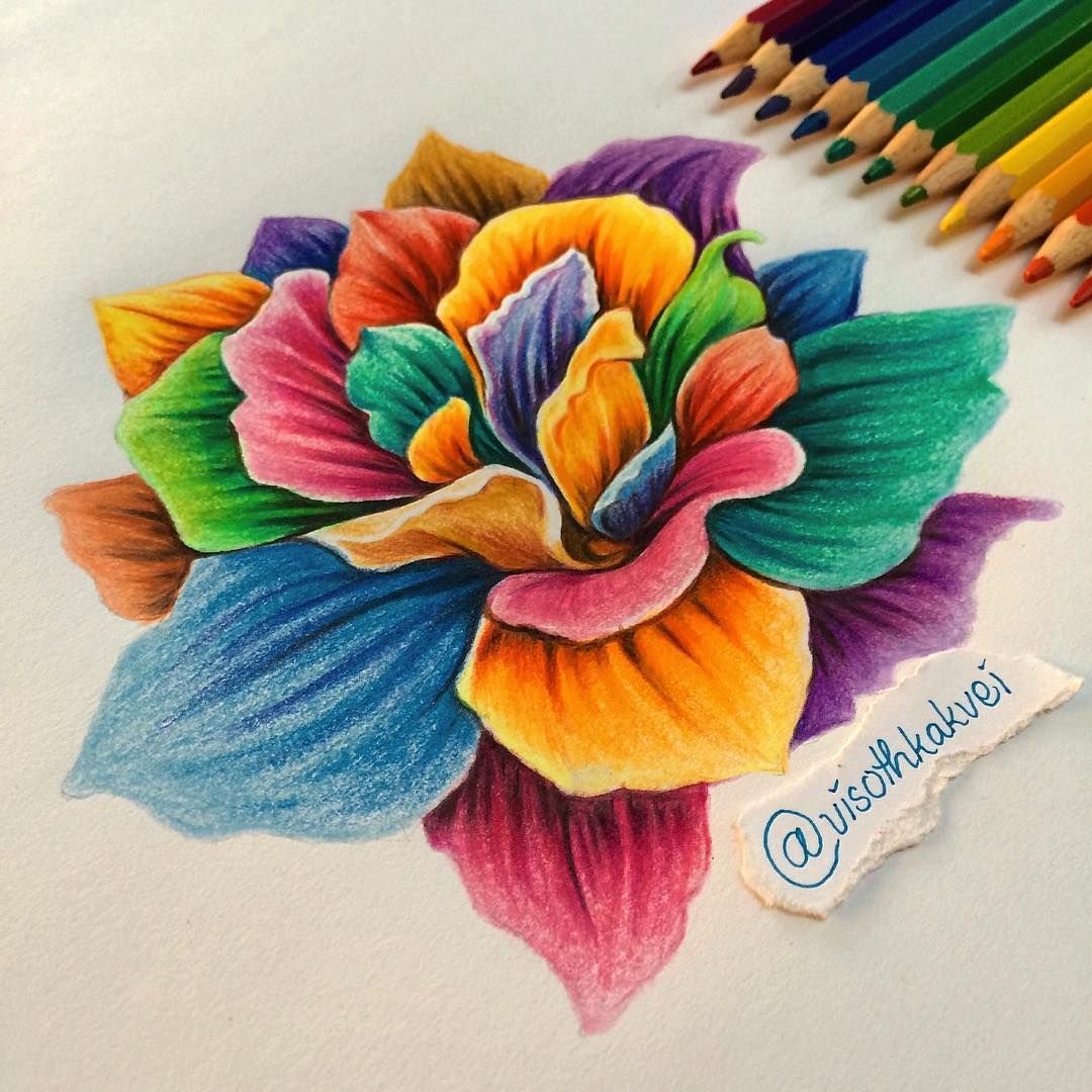 Цветы Раскрашенные цветными карандашами